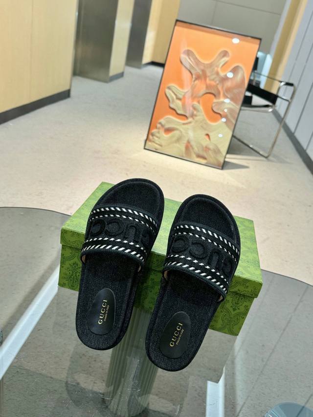 / 工厂价300 全年出货,300个色】古驰Gucci最新限量厚底拖鞋 。顶级品质发售 购入正品开发 . 材质.工艺与原版一致 鞋面:原版特殊印刷工艺印花 内里:透