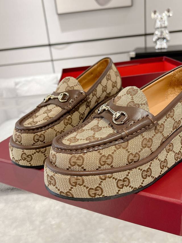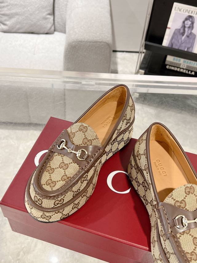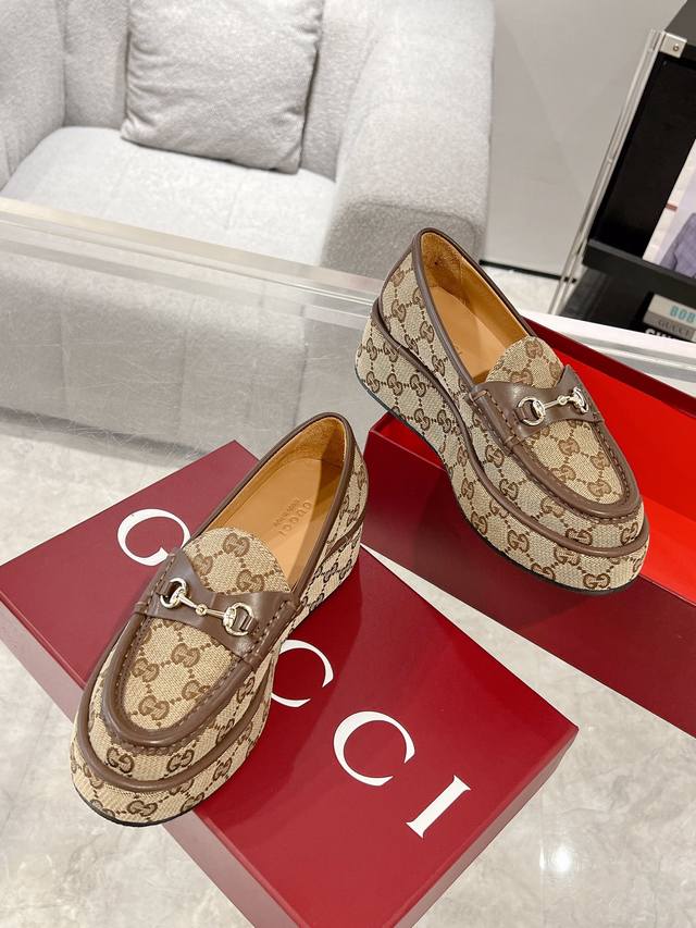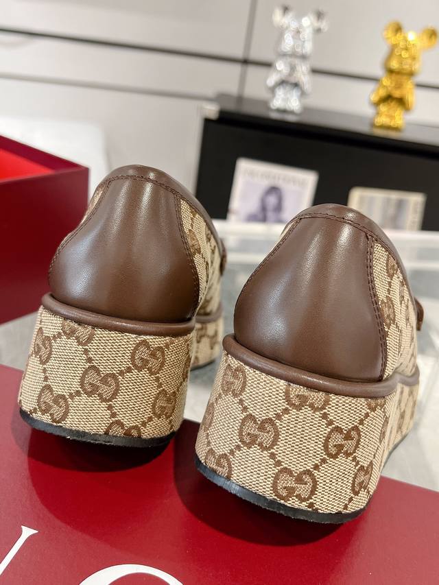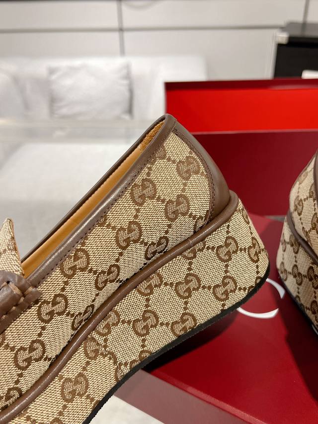 原版米色和乌木色gg帆布 . 原版定制柔软羊皮里. 原版开模皮革搭配橡胶大底 底厚:前2.5Cm 后5Cm码数:35 41 40 41定做不退换