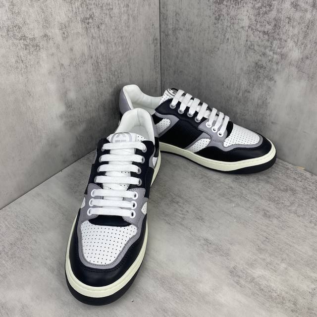 / 新款上架 Gucci 古驰 2024早春新款gg休闲运动鞋冲孔小脏鞋拼色板鞋情侣款 春夏轻便运动鞋 面料:头层牛皮面料 大底: 原版双g印花压纹tpu大底 内里
