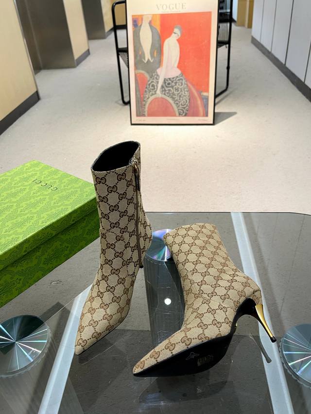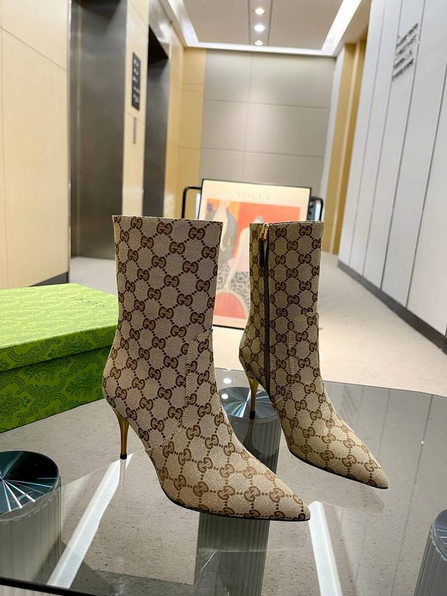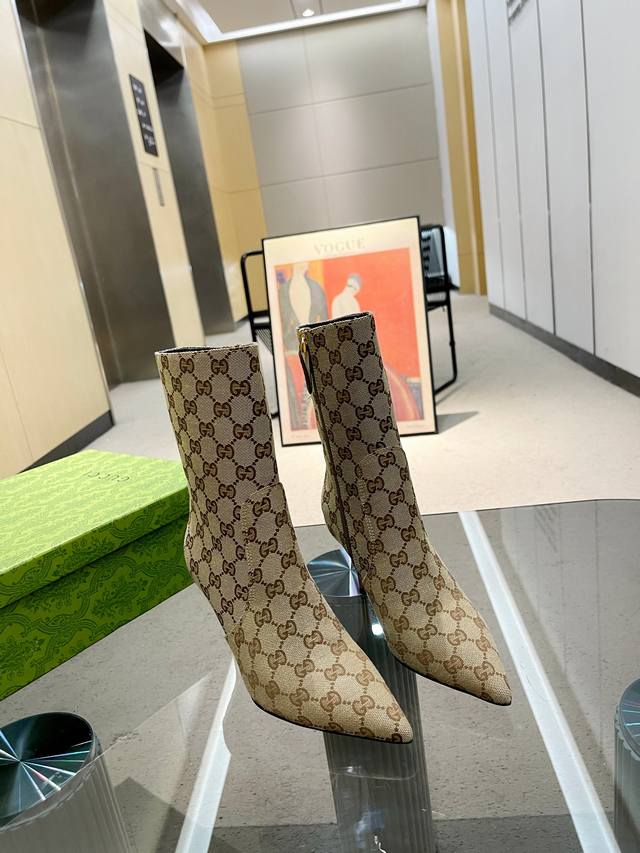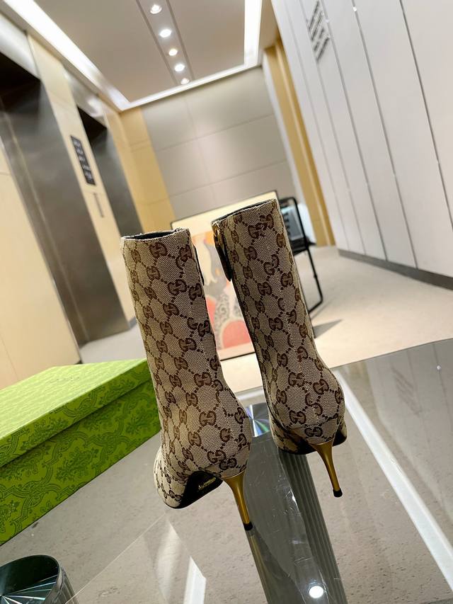 早秋Gucci新品8寸布面360 皮面 修腿靴