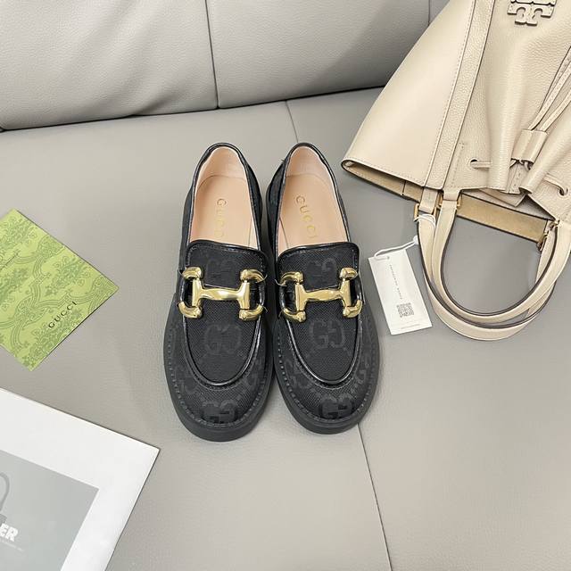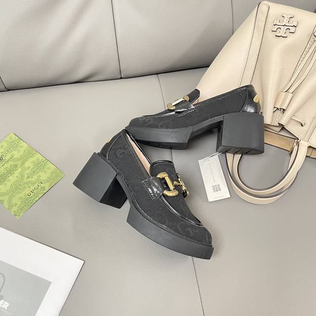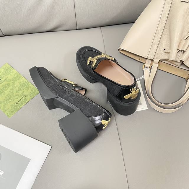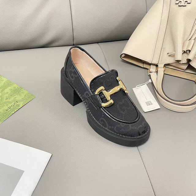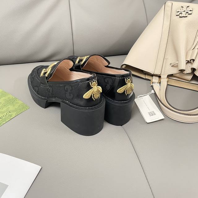 橙子出厂价Gucci 古驰2025新款 粗跟乐福鞋 高跟小皮鞋潮鞋穿搭 乐福鞋天花板 Ootd初夏刘诗诗同款 莫卡辛学院跟高:7Cm码数:35-41
