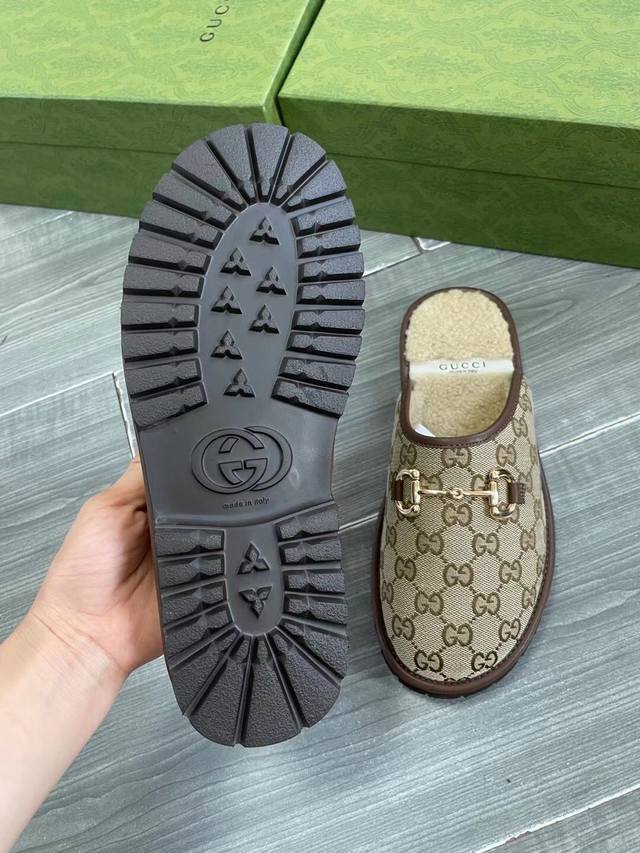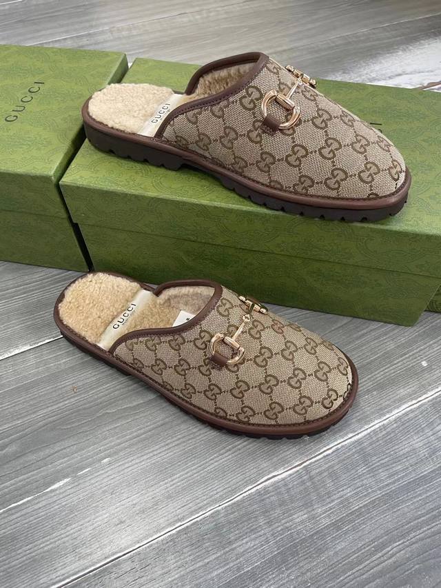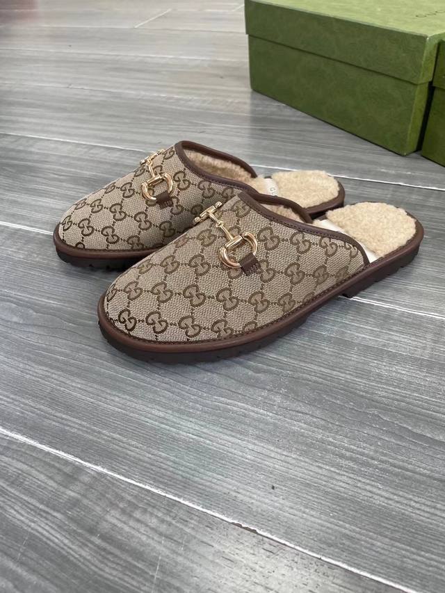 Gucci金典男士马衔扣 Gg 拖鞋