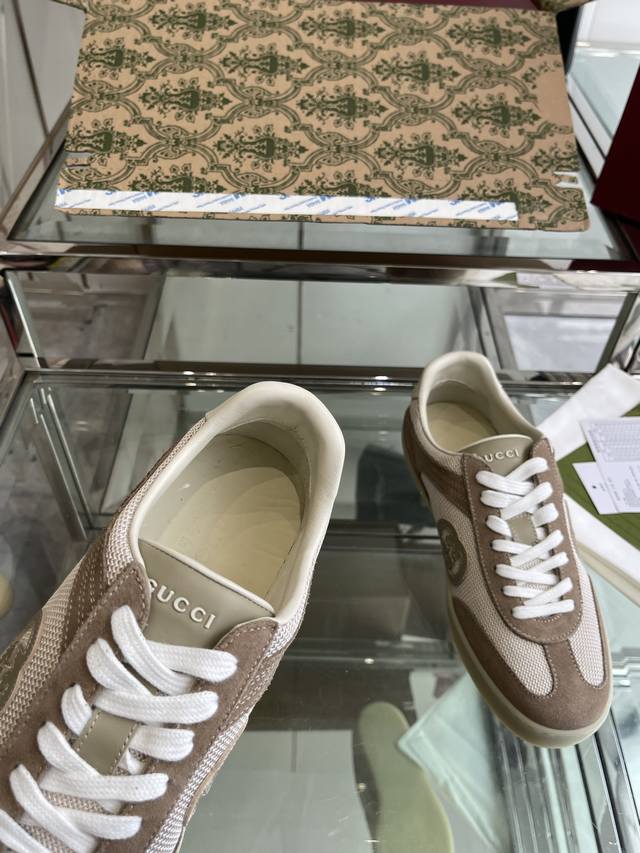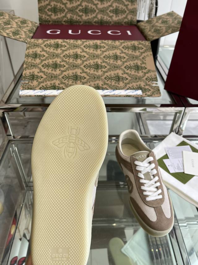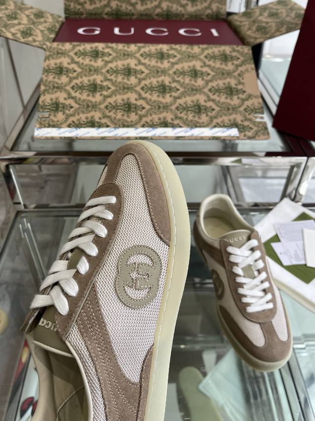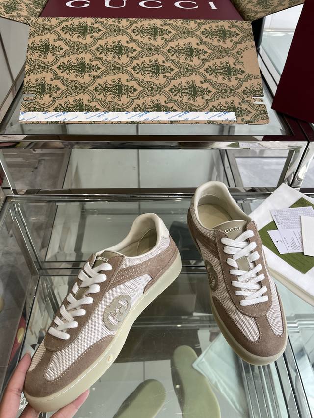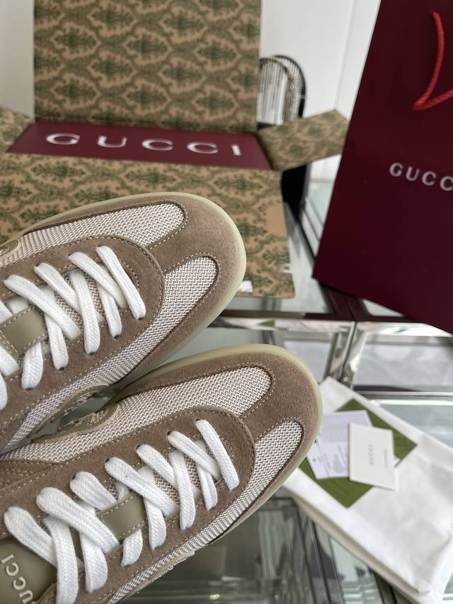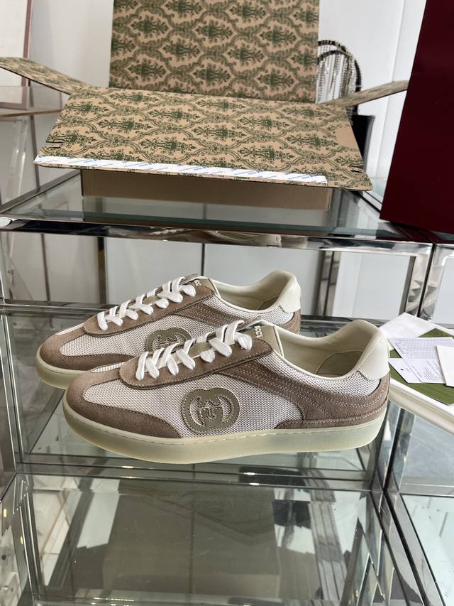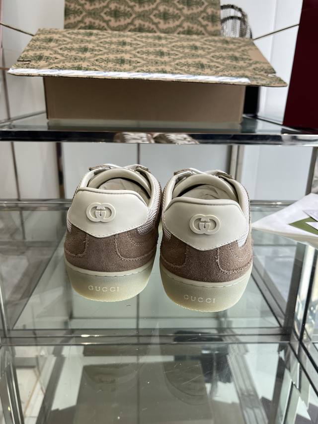 男款 Gucci 25Ss新色 休闲小白鞋 爆款推荐,原版Tpu鞋底、原版面料、牛皮内里牛皮垫脚 原版套楦工艺一比一折骨复刻!舒适追求极致! 面料:进口牛反绒+网布 专柜一致全套包装。码数:39-45 45定做