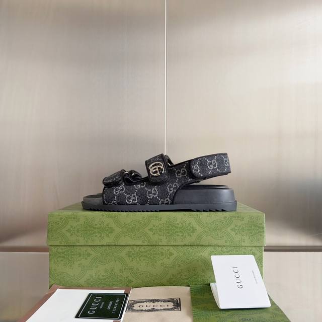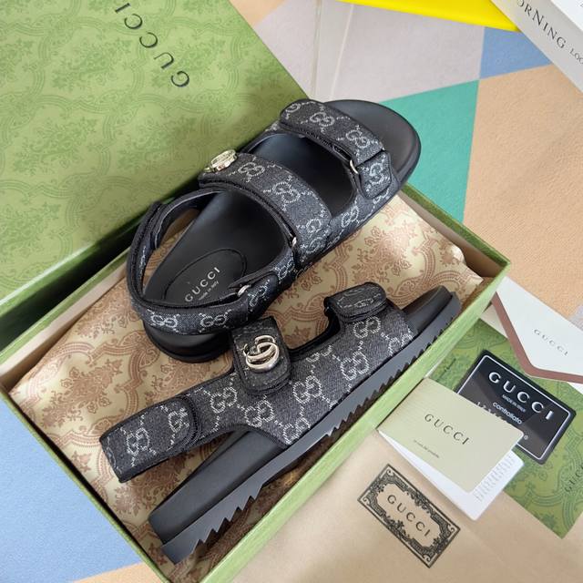 2024古奇gucci早春系列经典老花布凉鞋,Gucci专用老花帆布面料配双g金属扣作为品牌的标志性象征制作而成打造令人惊艳的作品焕新演绎~