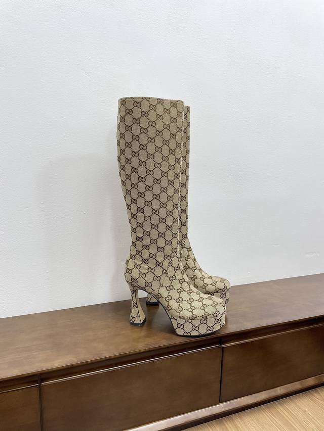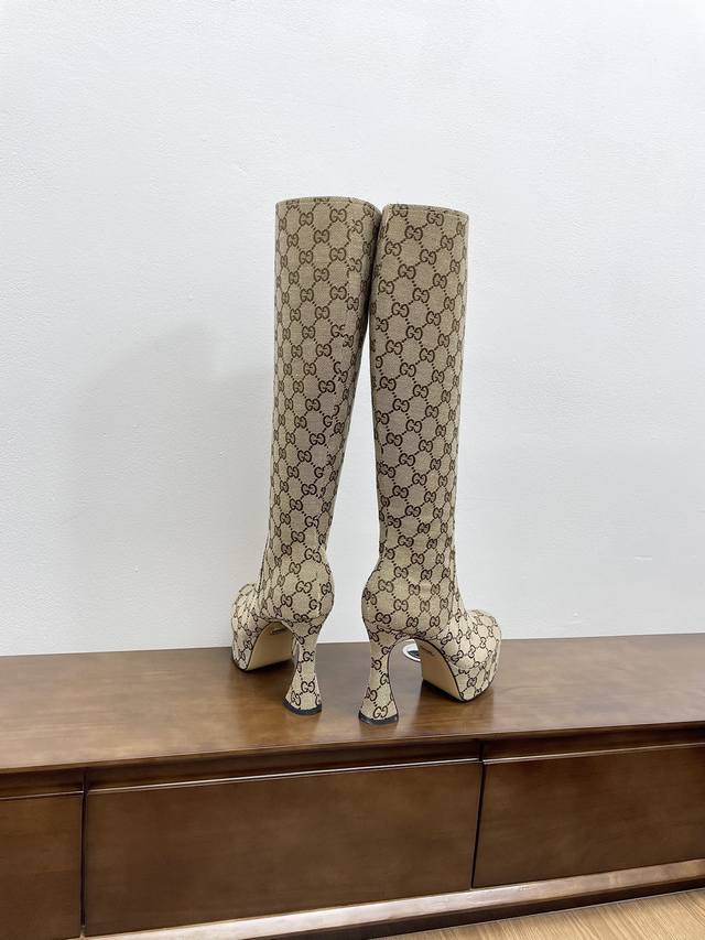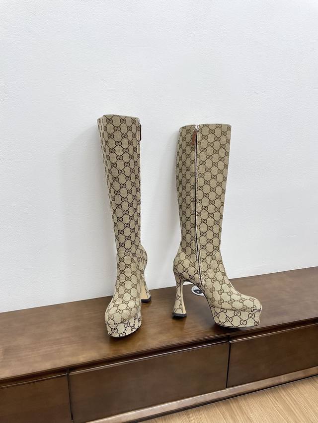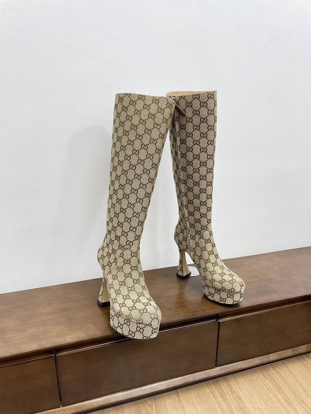 短靴 长靴 顶级版本gucci 古驰24 Aw秋冬新品gg老花防水台高跟靴 强烈推荐气质十足的女王范最优雅的欧美风格高跟鞋此单品犹如艺术品一般,带有高雅不失轻奢韵味,颜值满分 脚感满分 仙气十足,海外时尚博主网红推荐大爱款!
