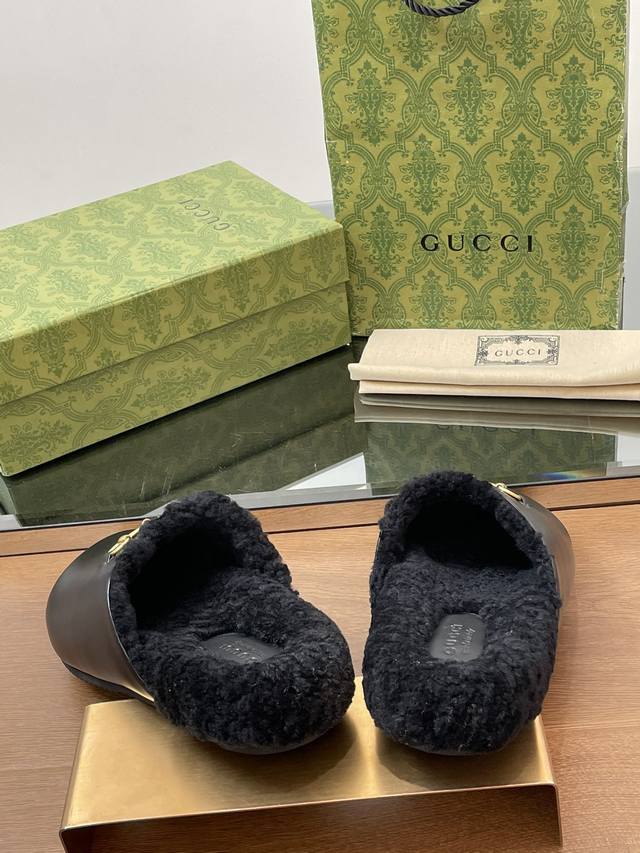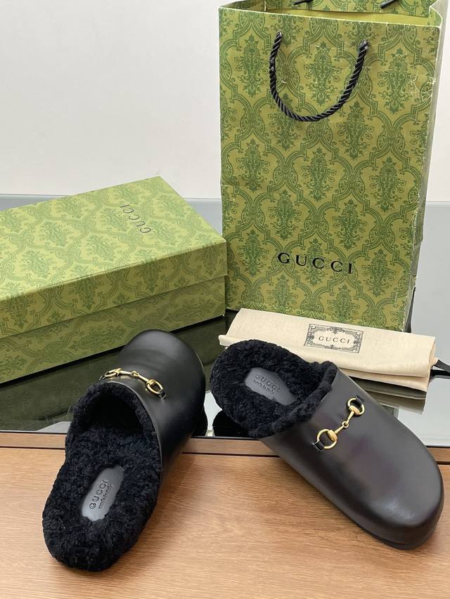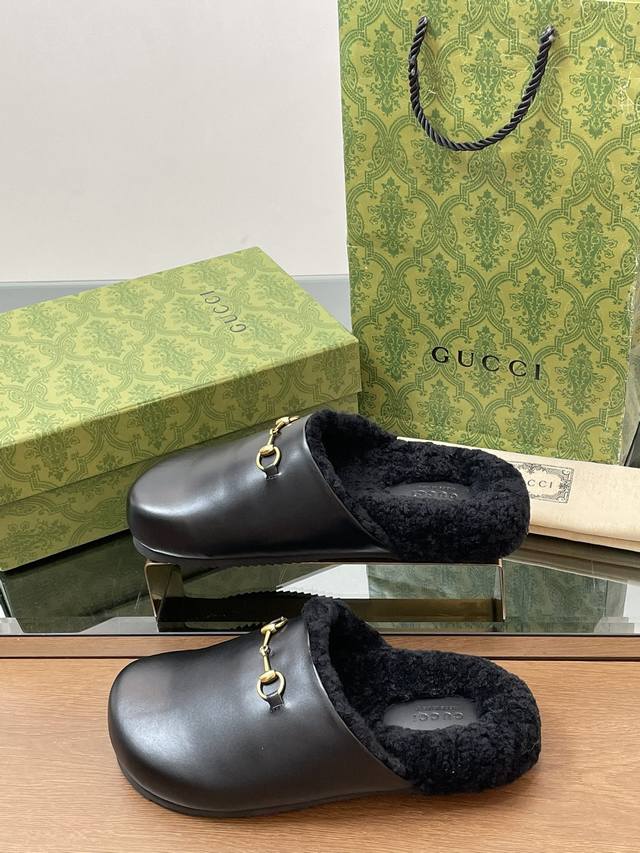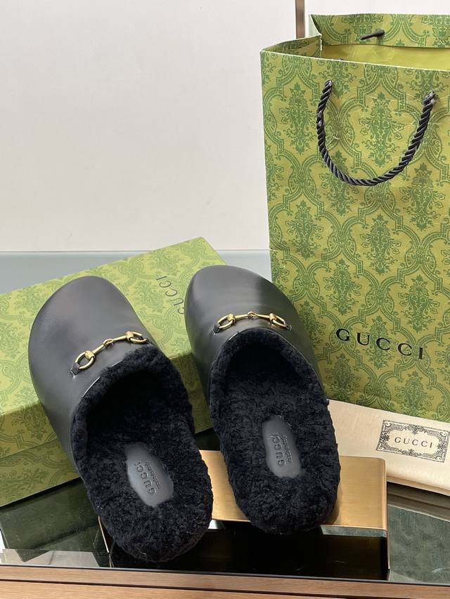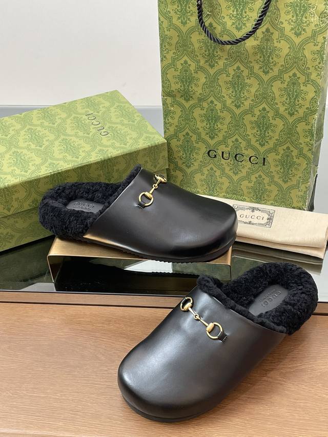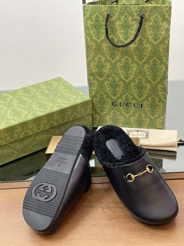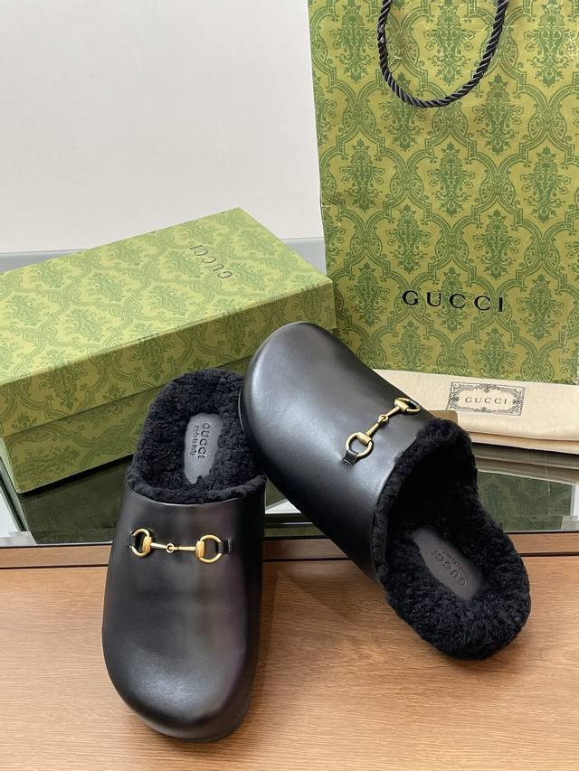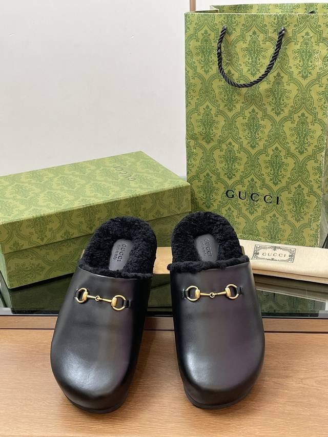 福利 新品厚底Gucci马衔扣男女同款情侣羊毛穆勒鞋 美利奴羊毛拖鞋 官网同步,原版一比一复制,最高版本所有材质细节均与Yb一致 常年做货。