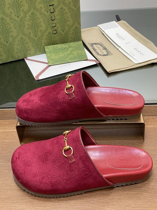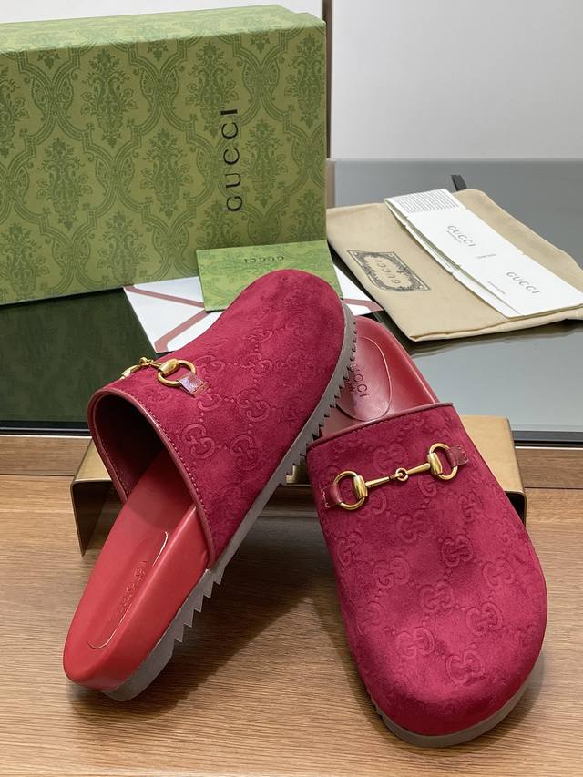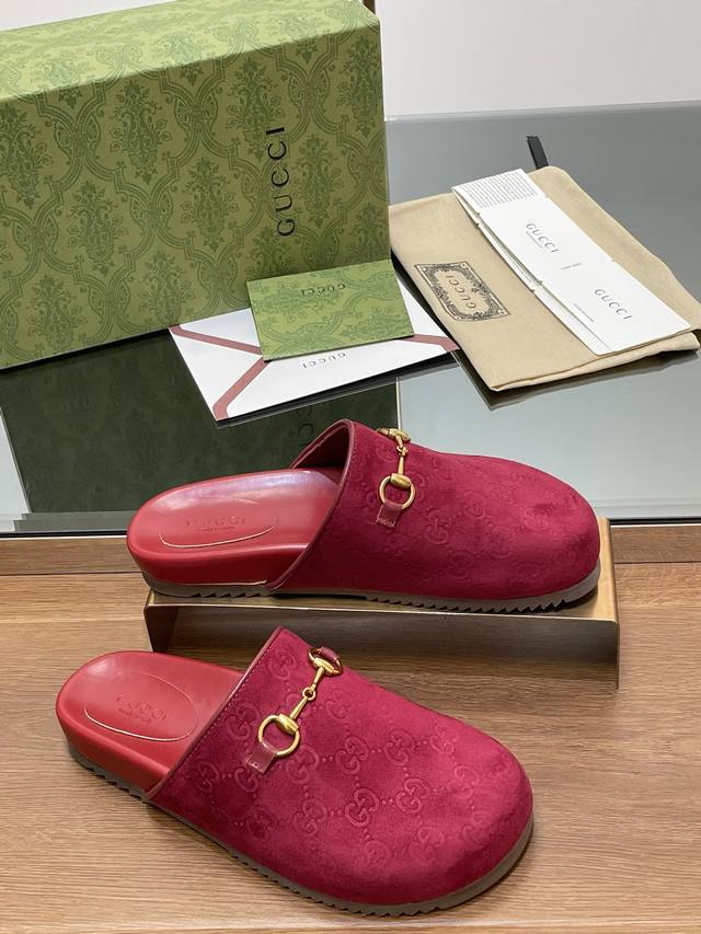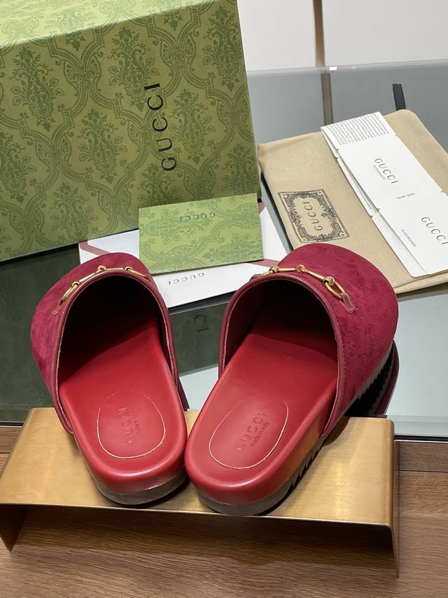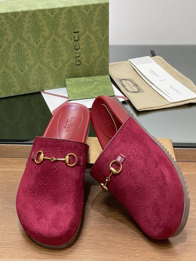 福利 新品厚底Gucci马衔扣G G男女同款情侣穆勒鞋 包头拖鞋 官网同步,原版一比一复制,最高版本所有材质细节均与Yb一致 常年做货。 面料:进口G G压花牛