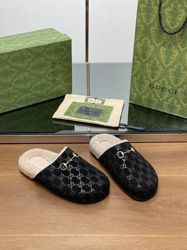 福利 新品厚底Gucci马衔扣G G男女同款情侣羊毛穆勒鞋 美利奴羊毛拖鞋 官网同步,原版一比一复制,最高版本所有材质细节均与Yb一致 常年做货。