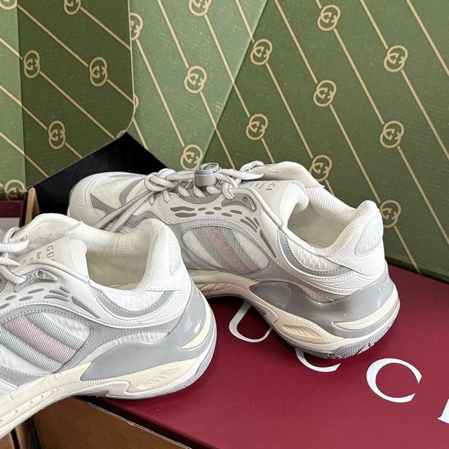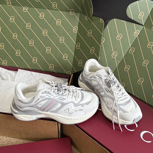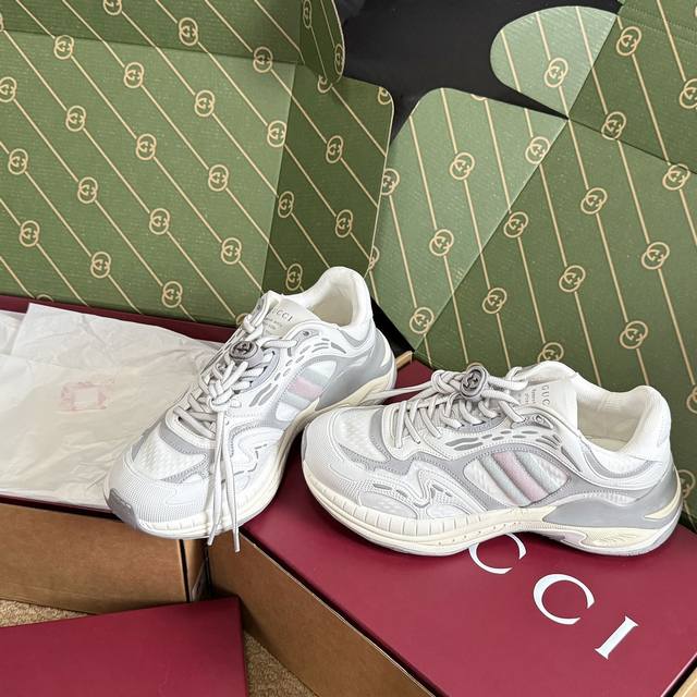 原版购入开发 做货 这款Gucci 2.0运动鞋焕新演绎品牌标志性条纹织带元素。这款运动鞋焕新诠释标志性细节,采用Eva厚鞋底,搭配灵动廓形,带来稳步舒适穿着体验