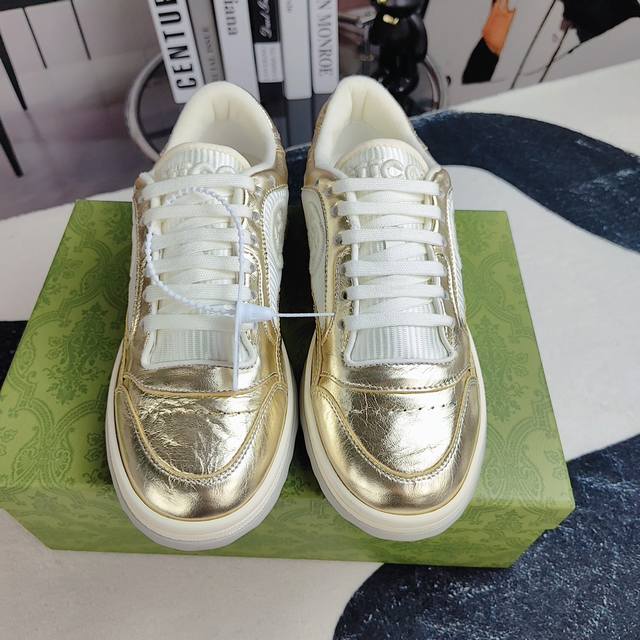 原版购入开发 做货 古驰mac80全新爆款系列 精致小巧的互扣式双g标识浪漫诠释此系列的美学理念。选用米白色皮革,复古灵感巧妙融于运动鞋设计,焕新演绎品牌标识。