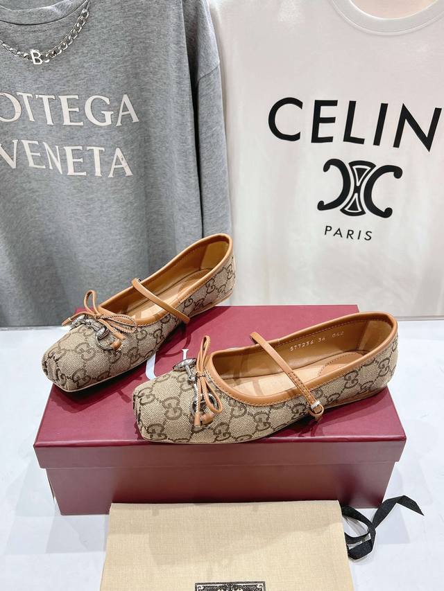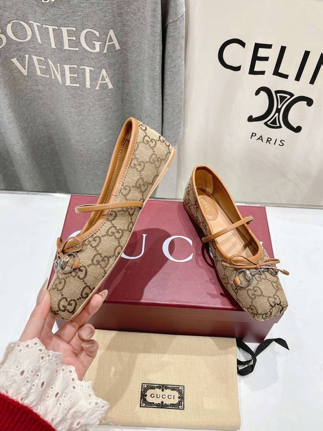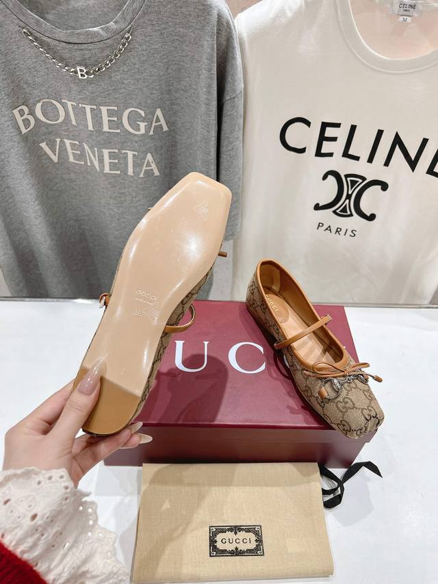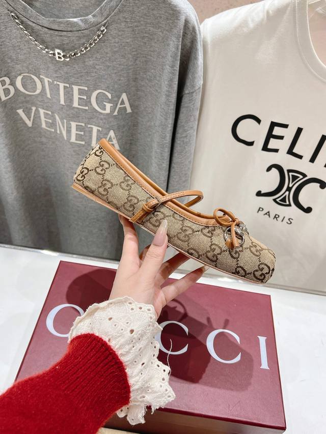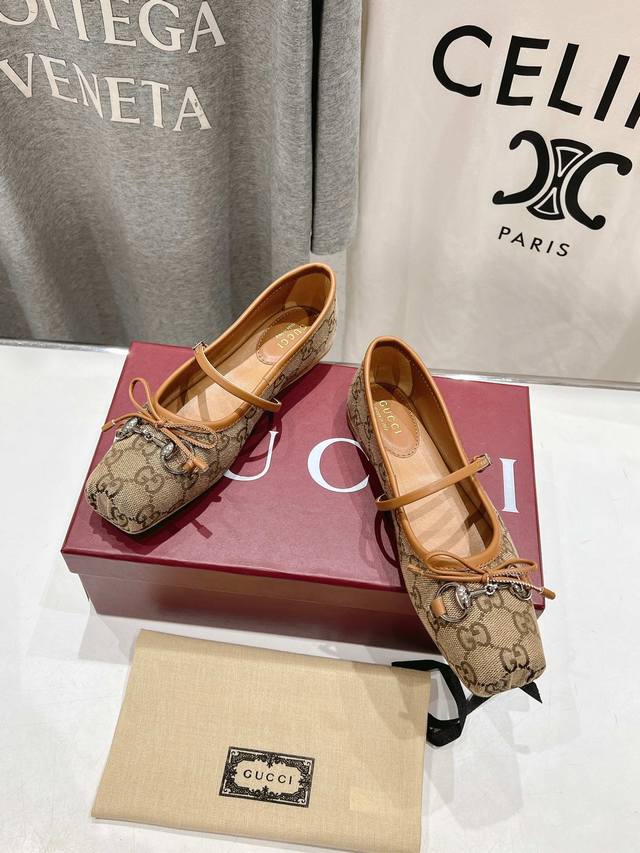 Gucc-I G家25Ss新款玛丽珍蝴蝶结方头马衔扣芭蕾舞鞋~走秀款,专柜卖爆了