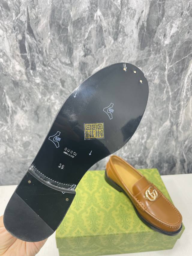 2024 Gucci 最新最火爆的铜扣英伦学院风乐福鞋鞋底:原版真皮大底码数:35-40标准码 跟高1.5Cm
