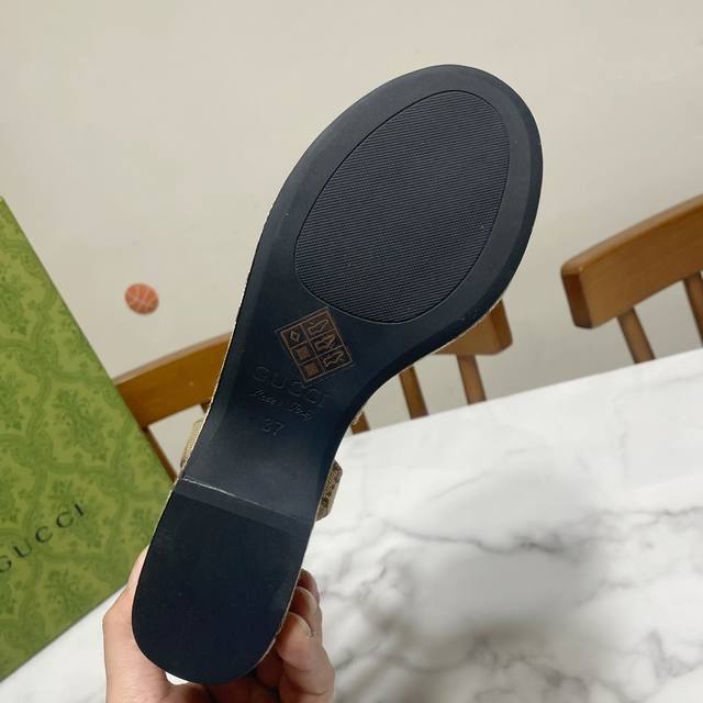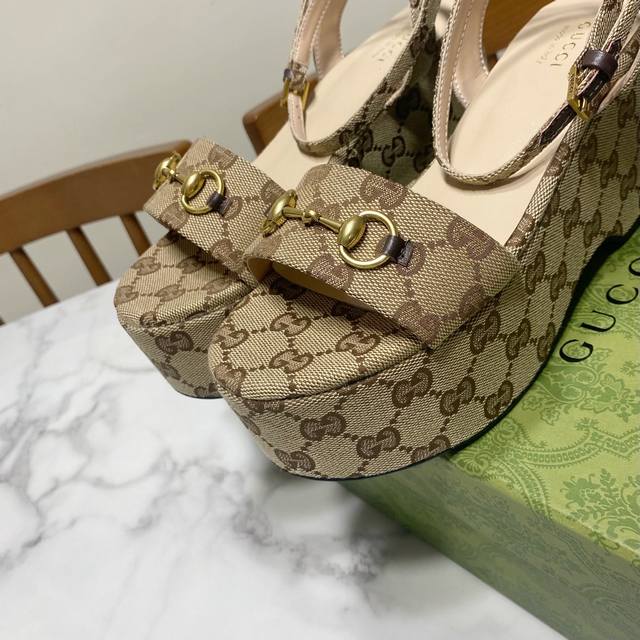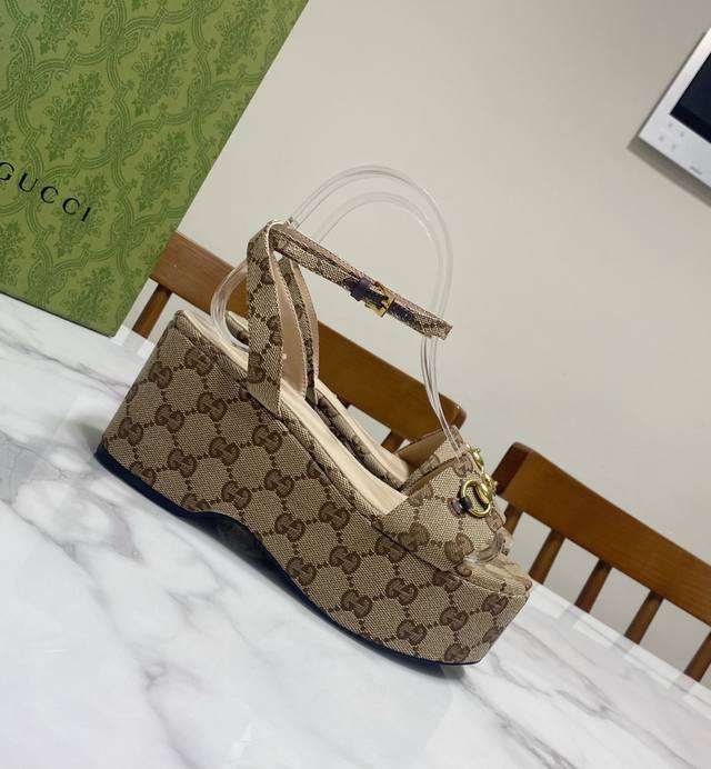 厂价 Gucc* 经典春夏走秀马衔扣 老花坡跟厚底凉鞋 G家在体现高级感这块 总让人大写的服气 看起来蛮简单的款式...
