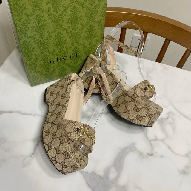 gucci 古奇 坡跟水台凉鞋,恨天高系列,妥妥的欧美风