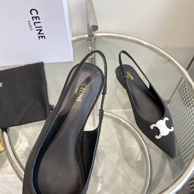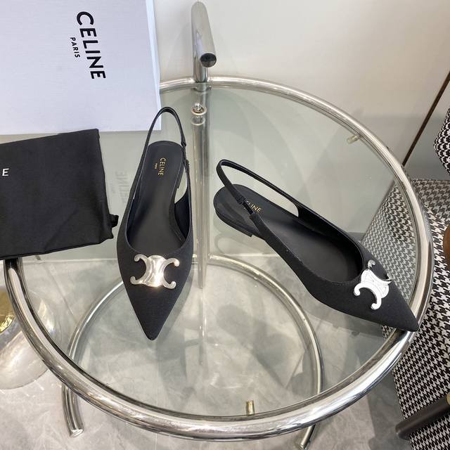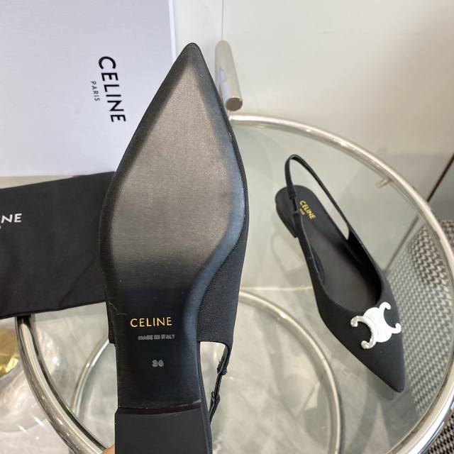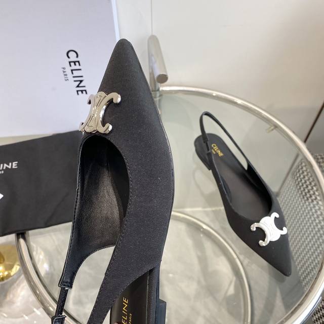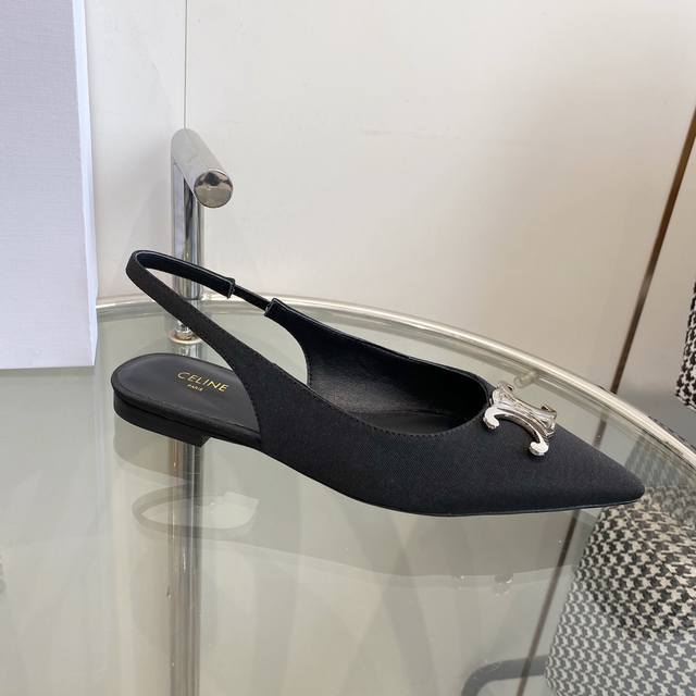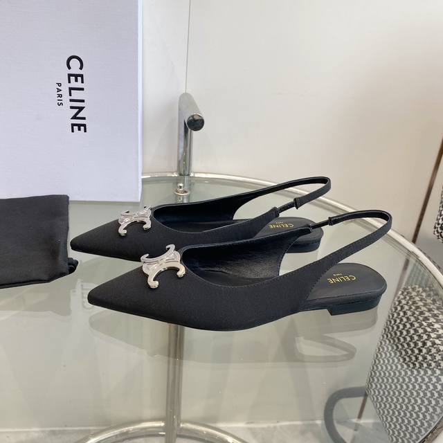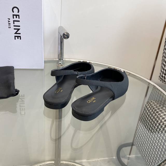 Celine赛琳新品Alma Triomphe 凯旋门后空平底凉鞋 顶级品质 经典凯旋门Logo 搭配原版定制科技布 开边珠牛皮 羊皮内里垫脚 进口真皮大底 S