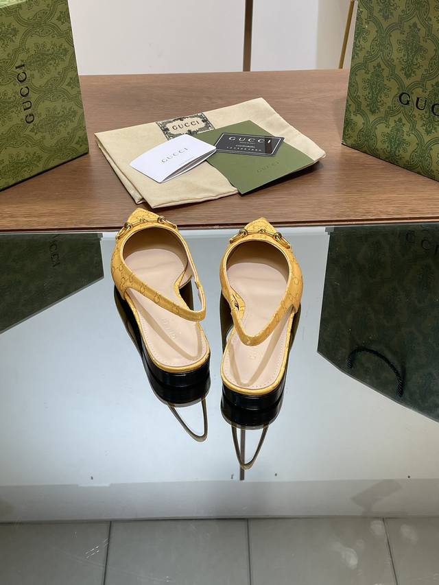 G家新款gucc马衔扣露跟浅口凉鞋平底芭蕾舞g G老花凉鞋 出厂价