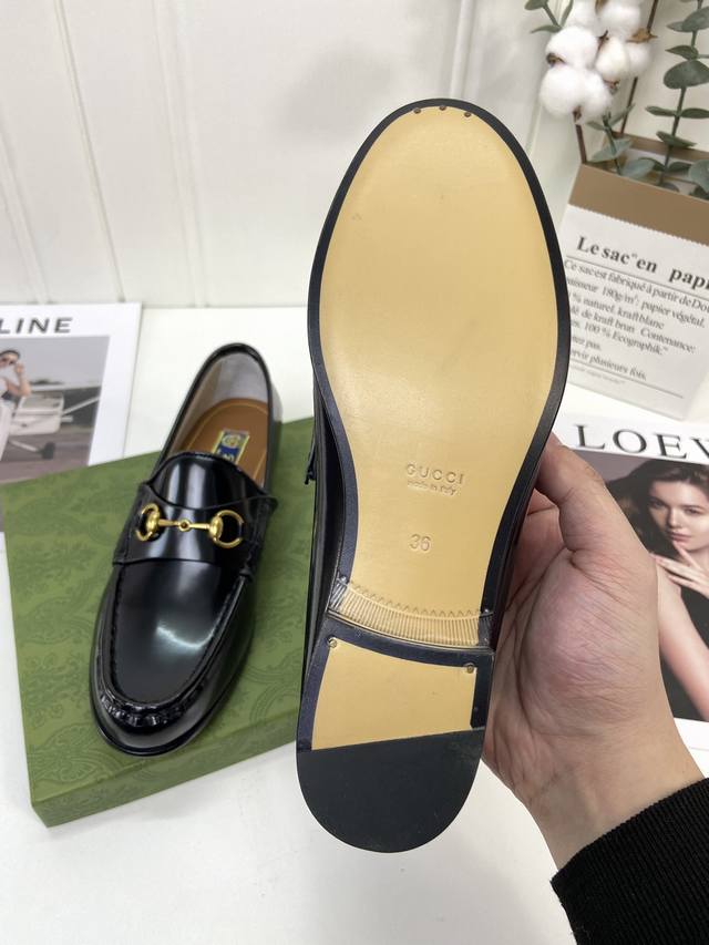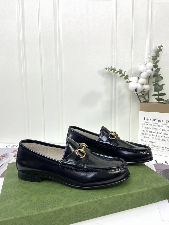 Gucc* G家马衔扣平底乐福鞋 1953马衔扣复古风乐福鞋, 鞋面:原版进口开边珠,内里原版透气布里 水染牛皮垫脚,原版意大利真皮大底 Size:35-39