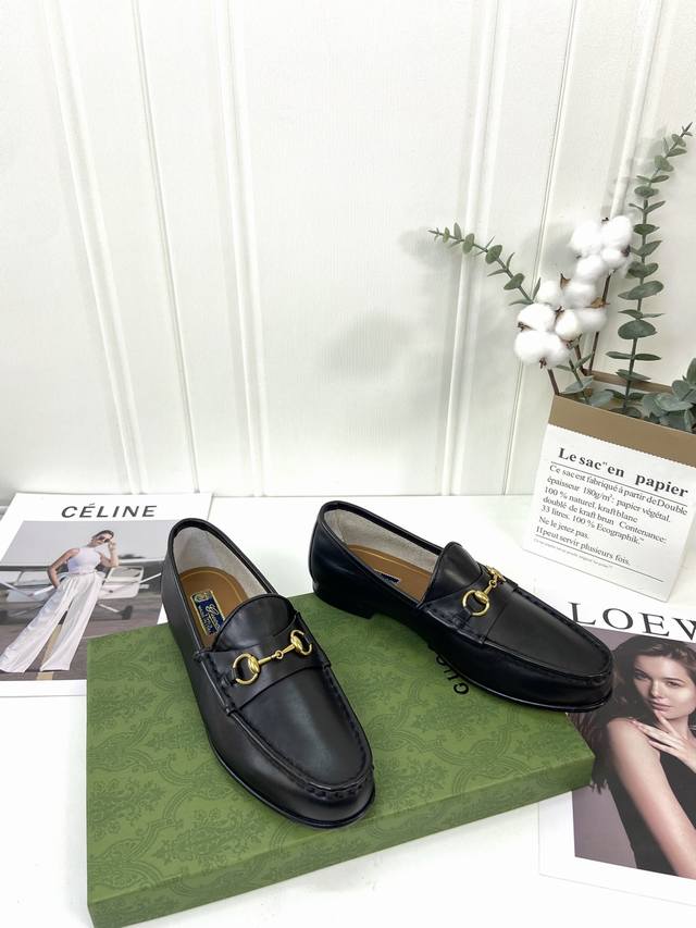 / Gucc* G家马衔扣平底乐福鞋 1953马衔扣复古风乐福鞋, 鞋面:进口小牛皮,内里原版透气布里 水染牛皮垫脚,原版意大利真皮大底 Size:35-39 34