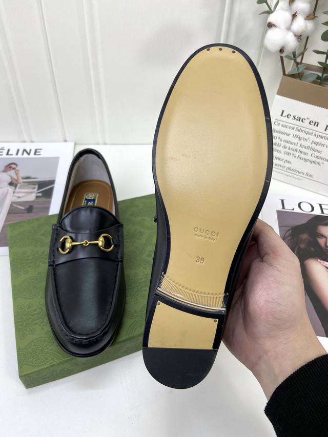 Gucc* G家马衔扣平底乐福鞋 1953马衔扣复古风乐福鞋, 鞋面:进口小牛皮,内里原版透气布里 水染牛皮垫脚,原版意大利真皮大底 Size:35-39 34