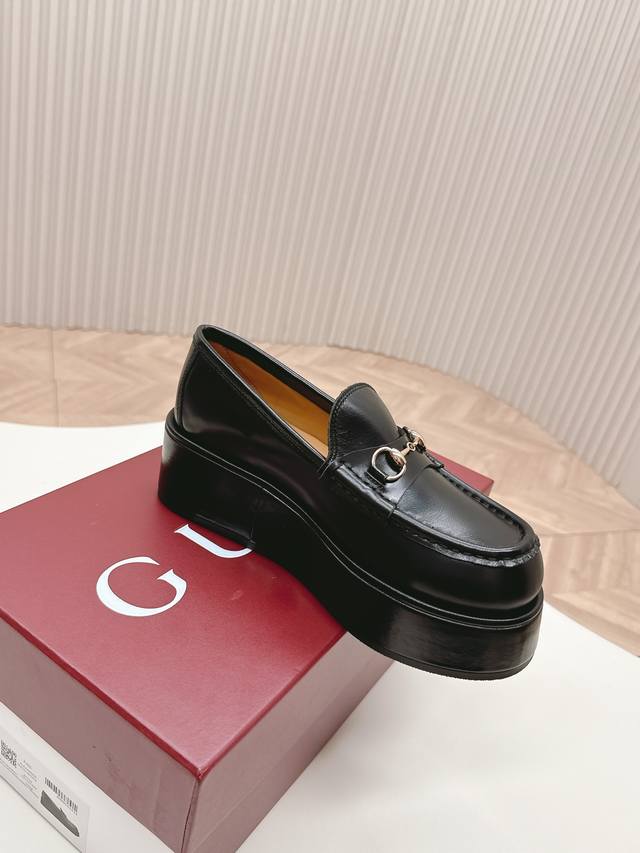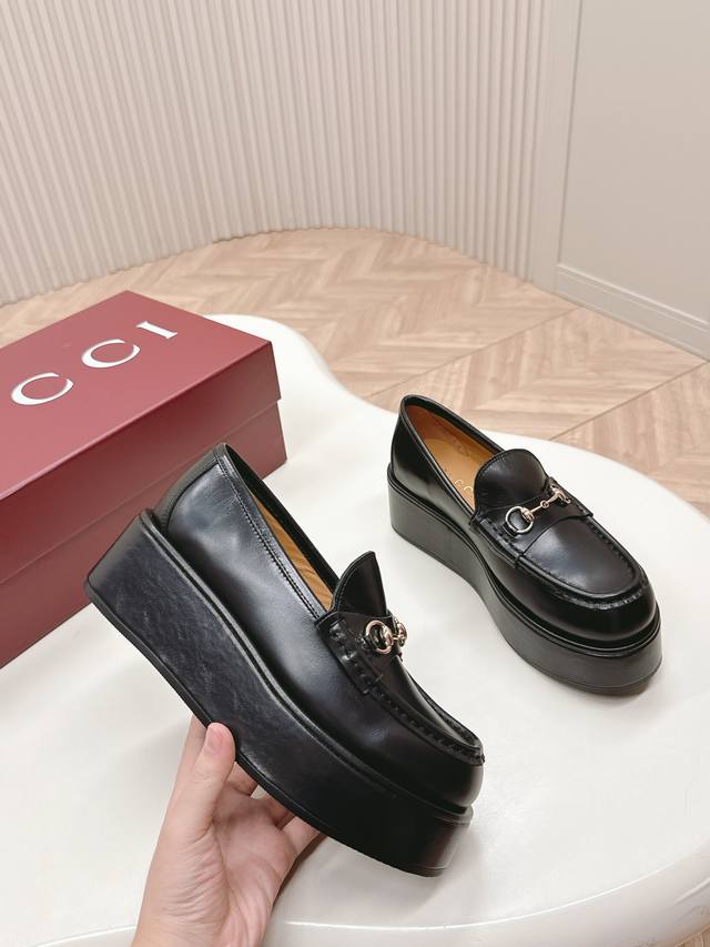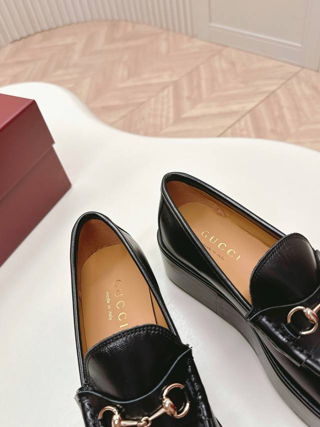Gucci古驰 最新 双g 老花 厚底 坡跟 马衔扣乐福鞋 小皮鞋