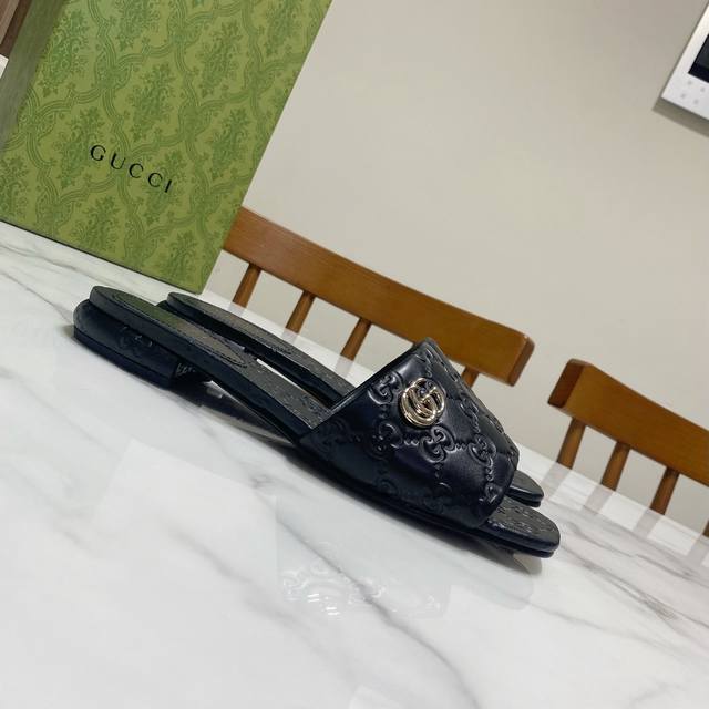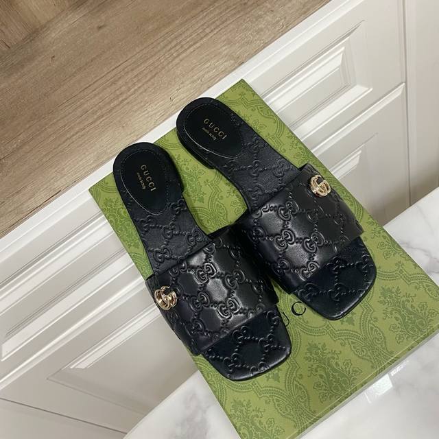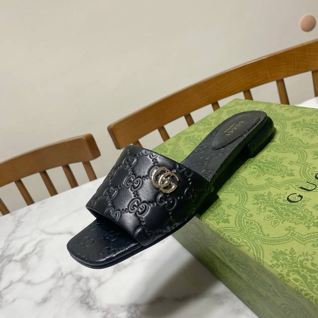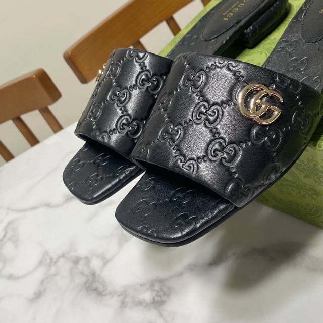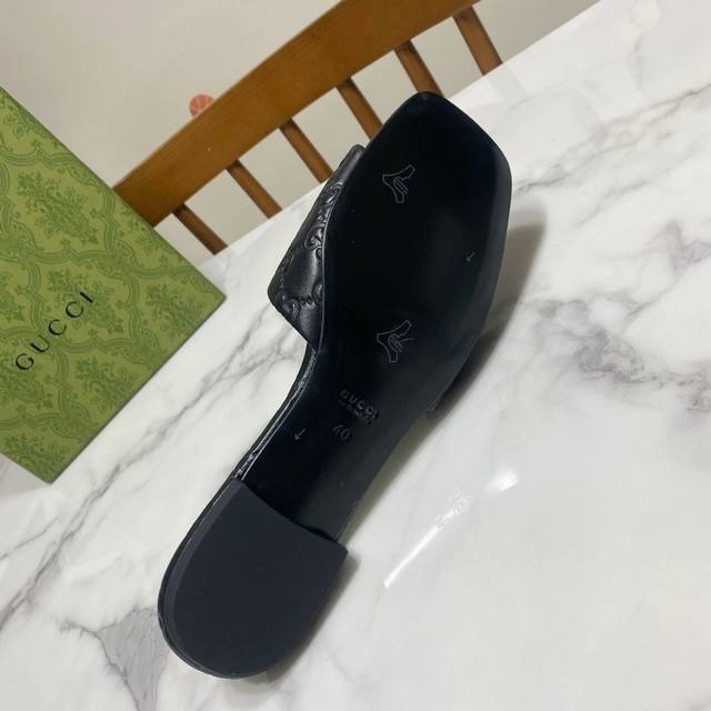 / Gucci 古奇 方头粗跟一字凉拖鞋,经典马鞍扣搭配,一贯的时尚.简约.大气.百搭 鞋面为粒面羊皮牙印工艺,里垫为水染羊皮,真皮大底,原版开发五金饰扣 跟高:1