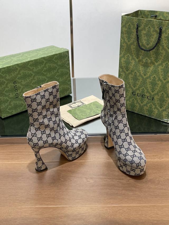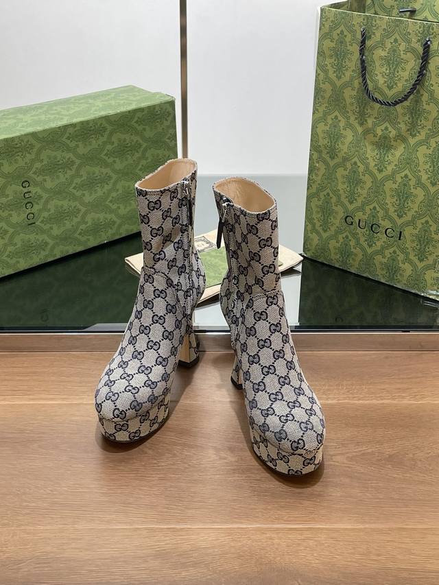 Gucci 古奇 秋冬新品防水台套脚单靴,马蹄跟高厚底防水台踝靴,走秀新款 凹造型必备款 原版套楦 高端品质
