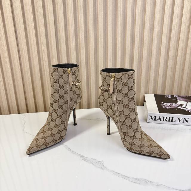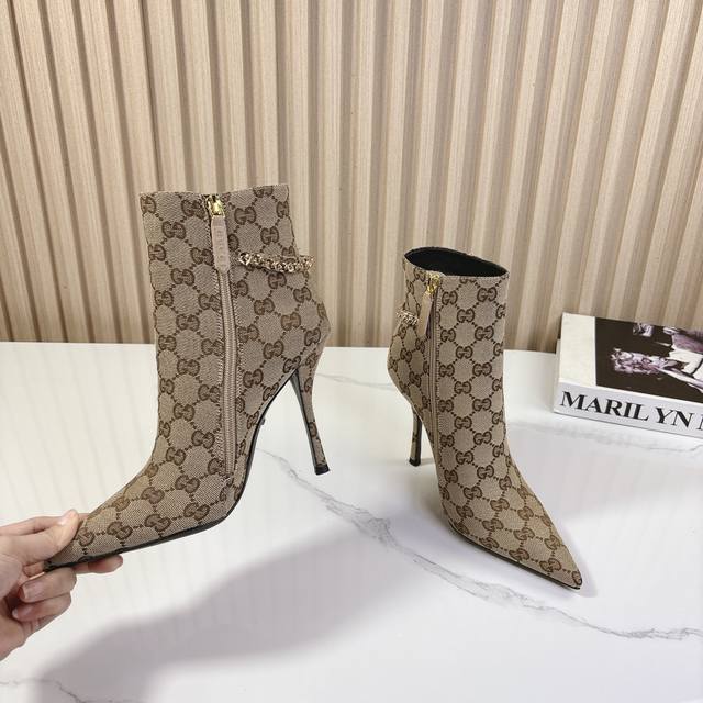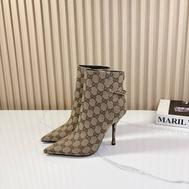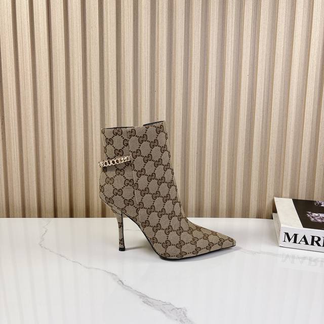 Gucci 经典爆款秋冬尖头链条高跟短靴!