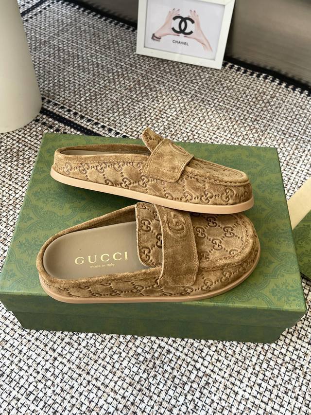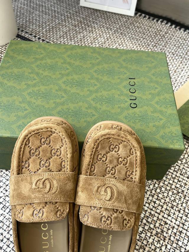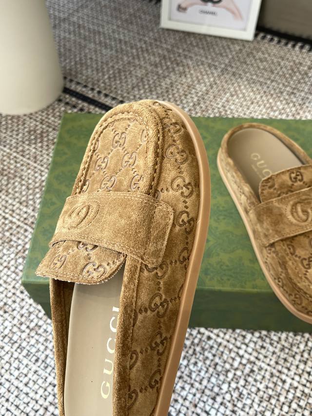 全新系列聚焦基础廊形与经典细节 这款便鞋选用品牌独具辨识度的G G绒面材质匠心制作 经典互扣式大G元素与迷你Gg更添品牌标识内涵