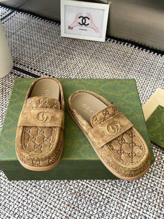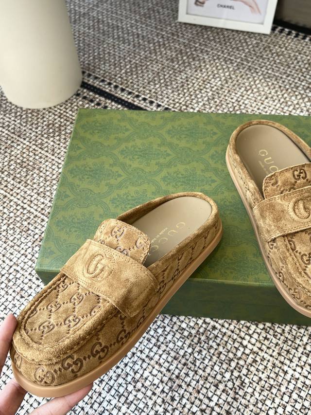 Gucci 2025新品厚底互扣式刺绣大G横带穆勒鞋 勃肯半拖 官网同步 原版一比一复刻 最高版本