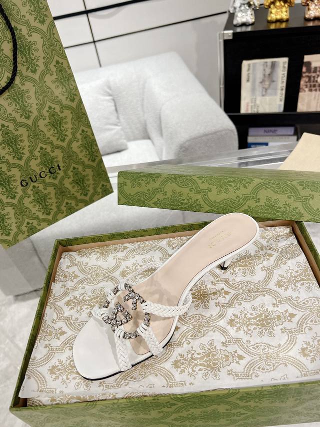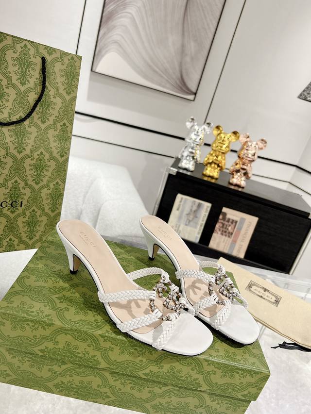 Gucci 23Ss 夏季最新款 水晶缀饰重工手工编织凉拖鞋 高端版推荐 专柜购买原版一比一打造 所有细节 材料 全部跟你在专柜买到的都一样 跟高4.5Cm 码数:35-40