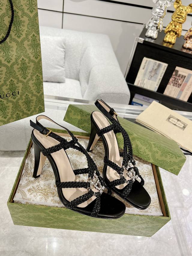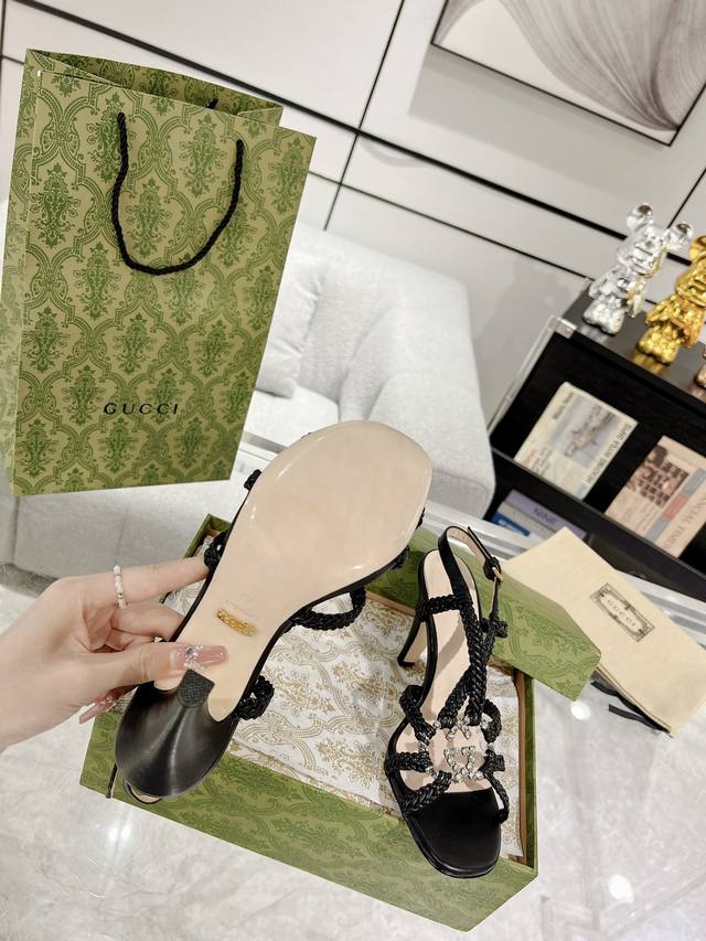 Gucci 23Ss 夏季最新款 水晶缀饰重工手工编织凉拖鞋 高端版推荐 专柜购买原版一比一打造 所有细节 材料 全部跟你在专柜买到的都一样 跟高9Cm 码数:35-40