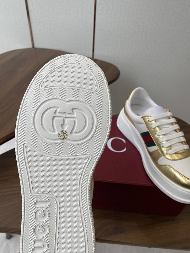 原版底有大Gucci Logo,后跟还有个Gg Logo,5Cm增高厚底,经典Gucci织带