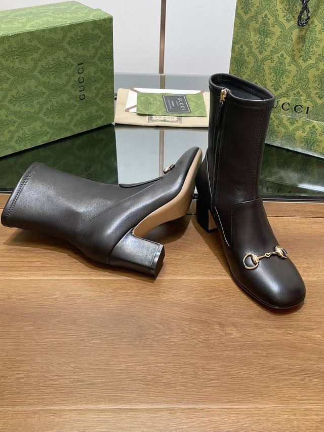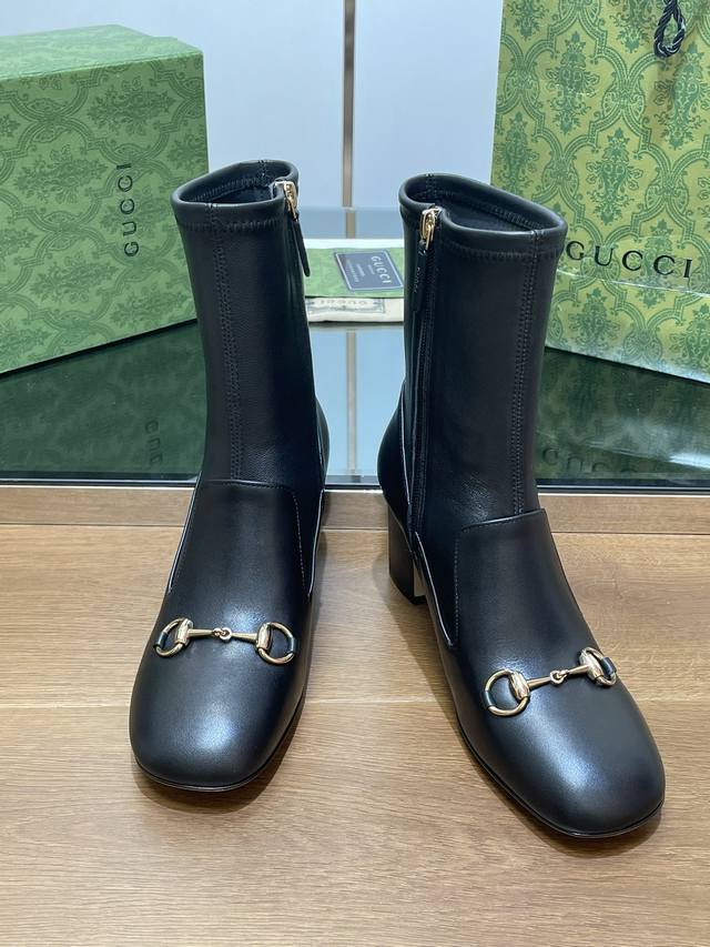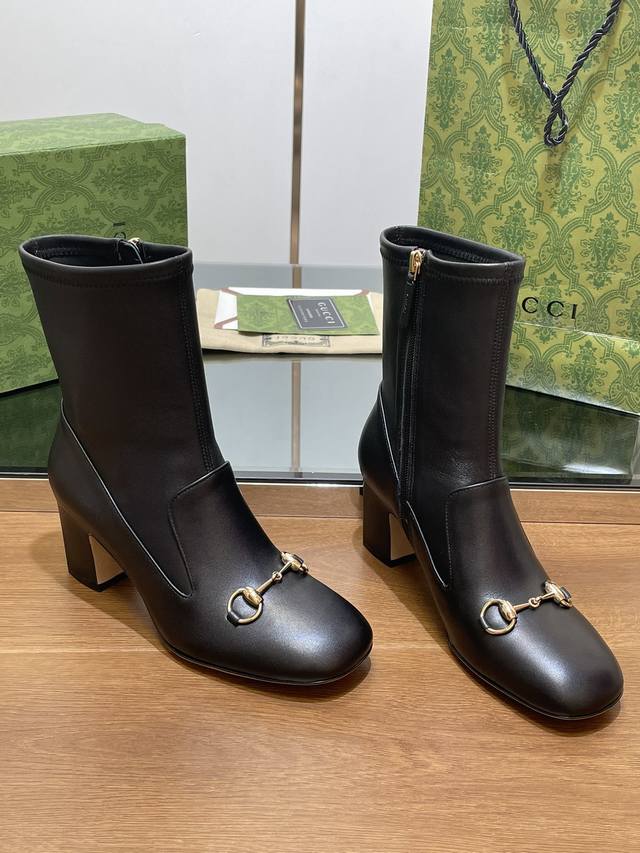 guccl高端精品,古奇早秋新款马衔扣弹力靴 经典粗跟方头踝靴原汁原味原单品质每个细节皆经过精心细致打造,可与Zg对比如一,无二品质!
