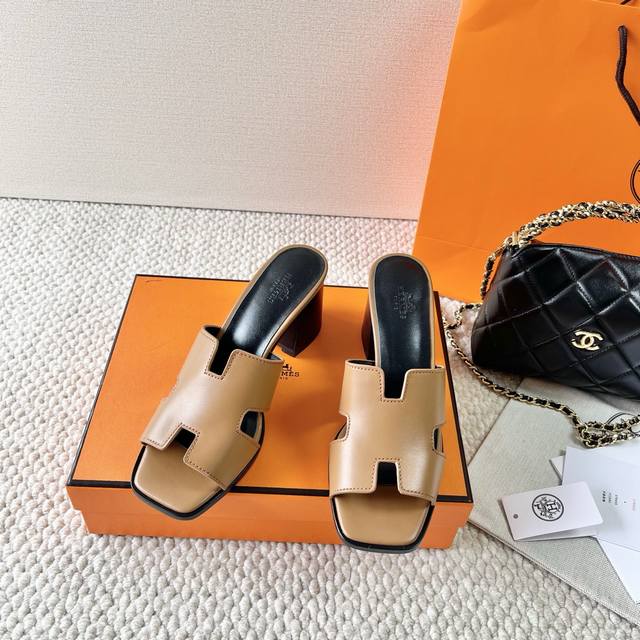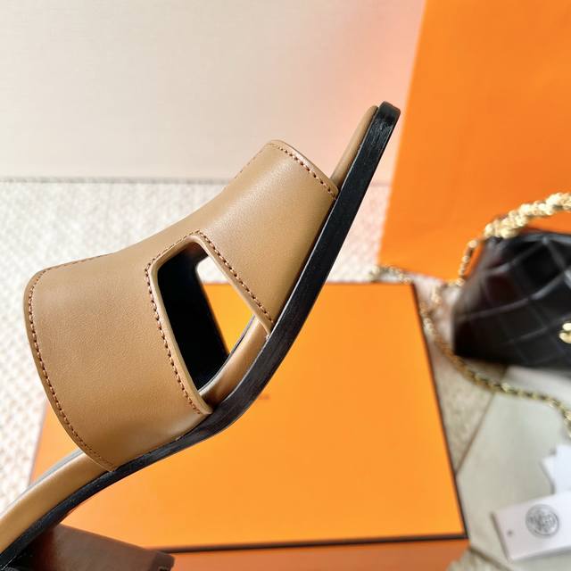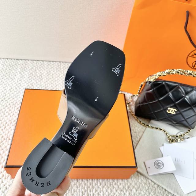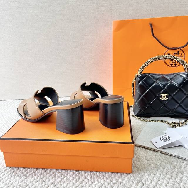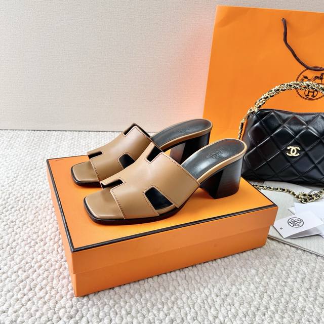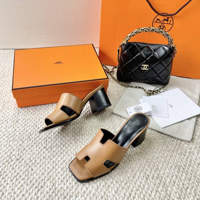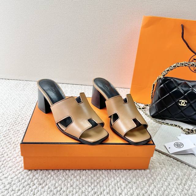 Hermes 爱马仕 H家 Helia 60系列 工字H粗跟凉拖鞋 鞋面:牛皮 大底:真皮底 跟高:6.5Cm 正码:35-39订做40.41