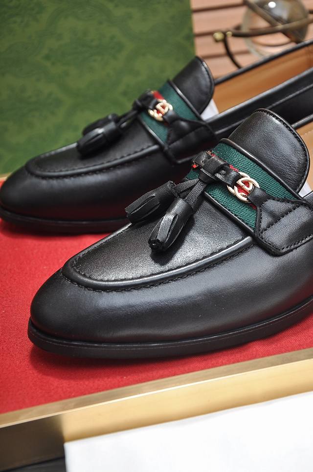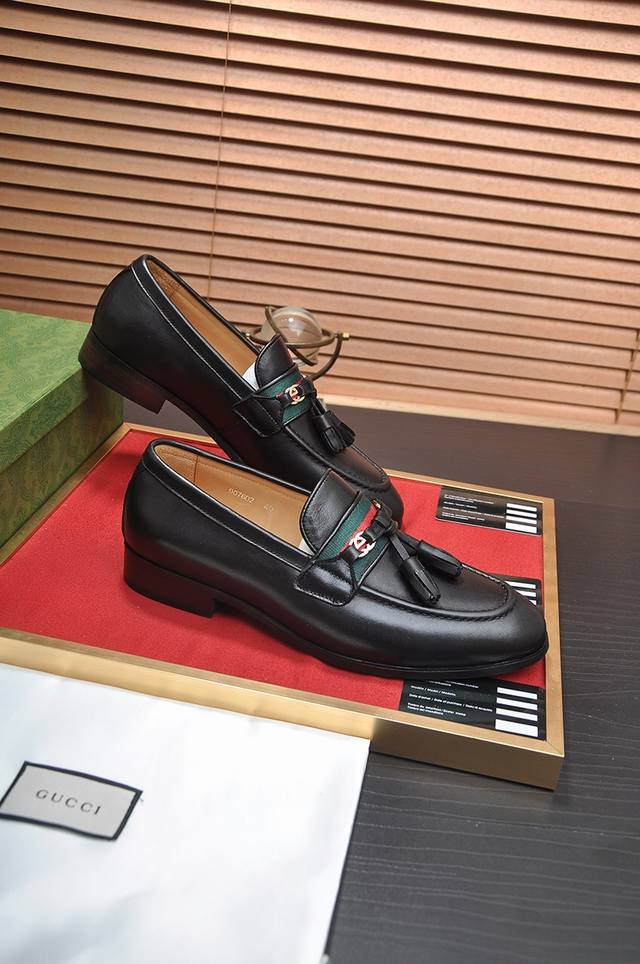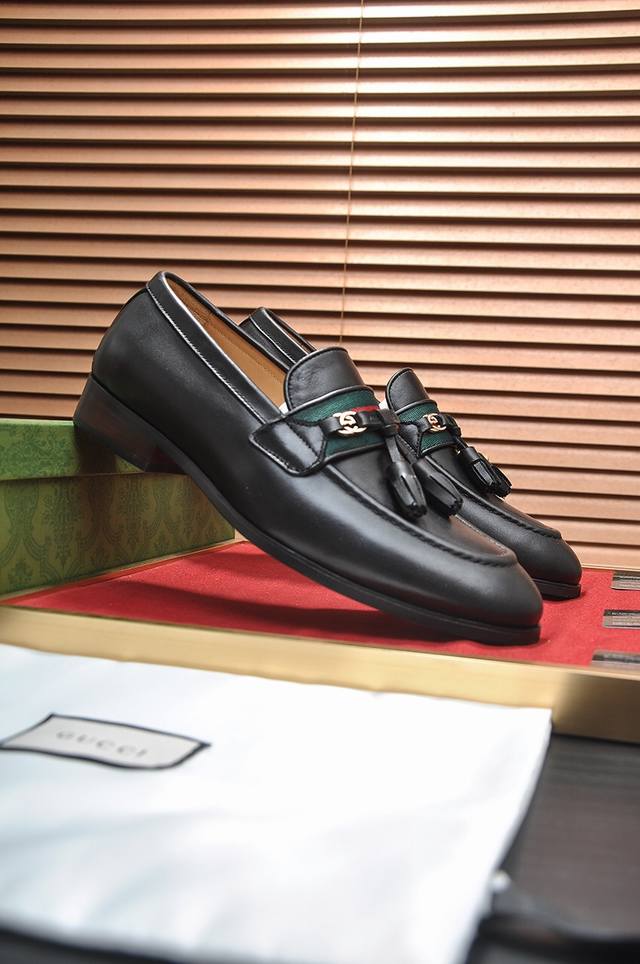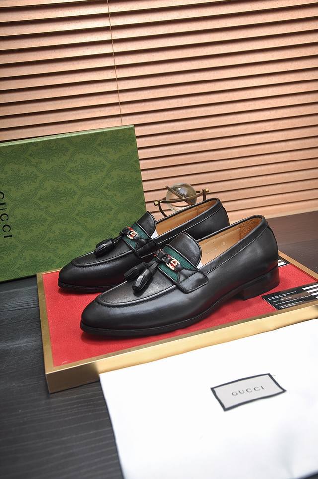 精品推荐**古奇**最新商务正装皮鞋 官网同步 市场上顶级版本 纯手工制作.面料:进口小牛皮配水染牛里38、39、40、41、42、43、44...