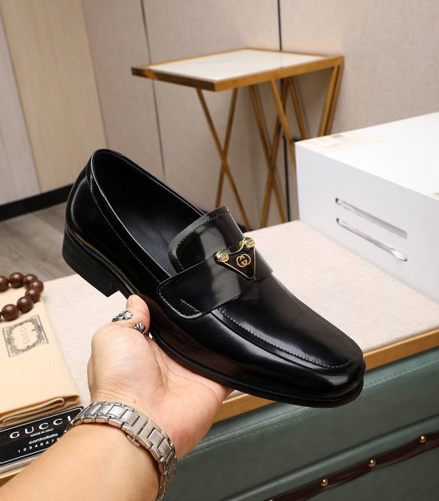出厂价 原版 水染牛里 古驰GUCCI 官网款正装鞋 意大利進口牛皮顶级进口水染牛皮内里精细手工制作 原版底,实物拍摄實物更好看 标准码数38-44码