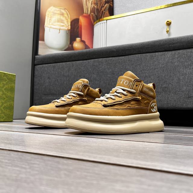 出厂价 古奇新款休闲运动鞋 时尚百搭, 版型简洁大气, 面料采用进口牛皮,透气布内里,原版耐磨橡胶大底,独家新款,实物拍摄,两色可选,码数:38-44