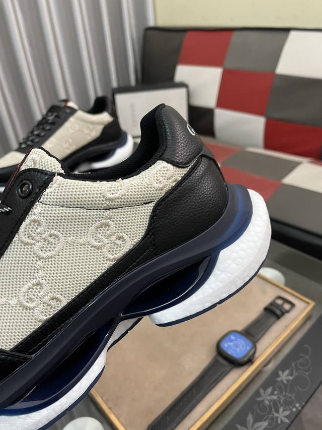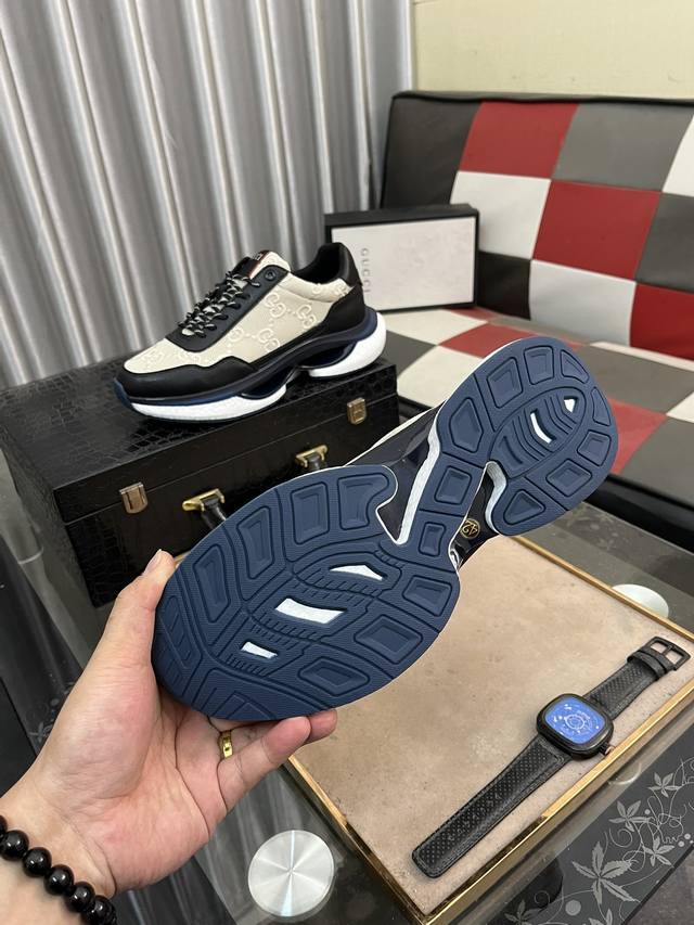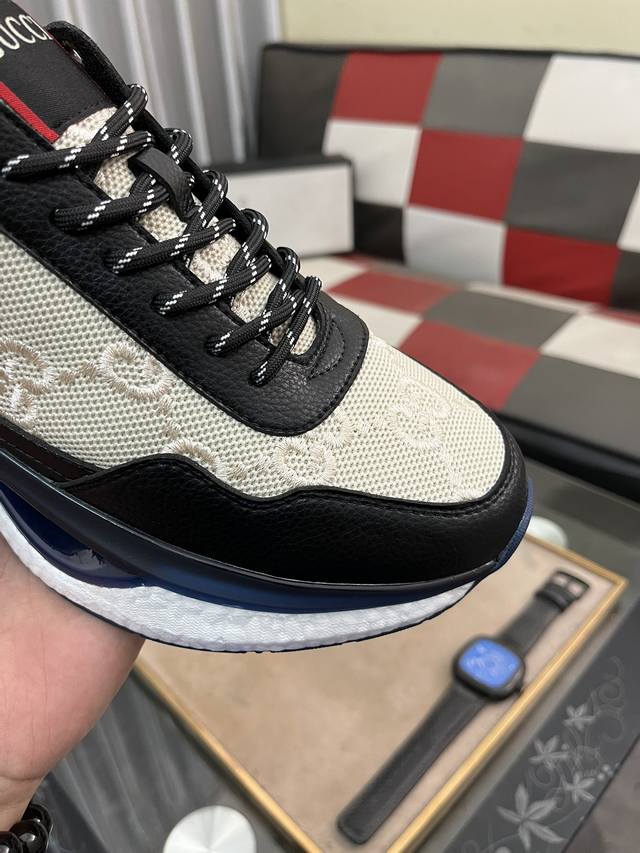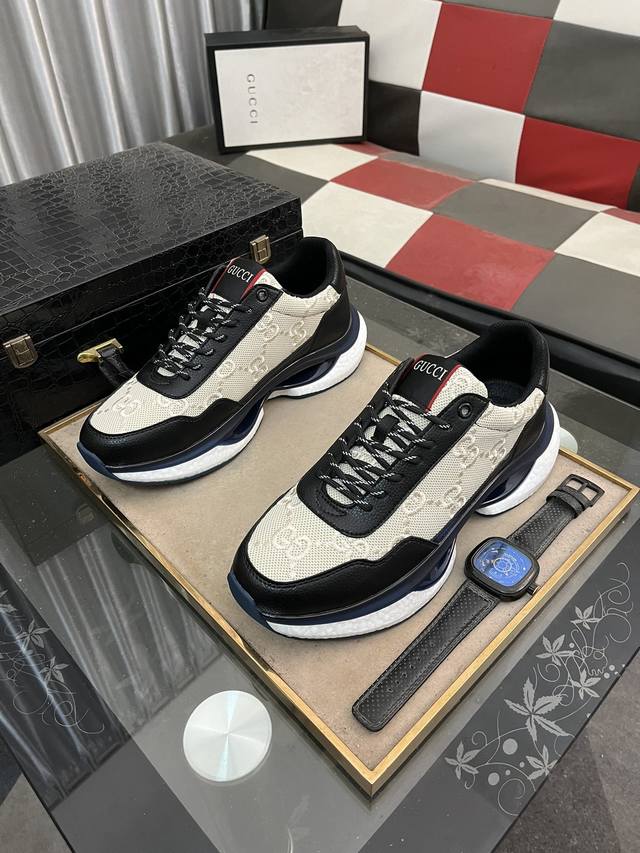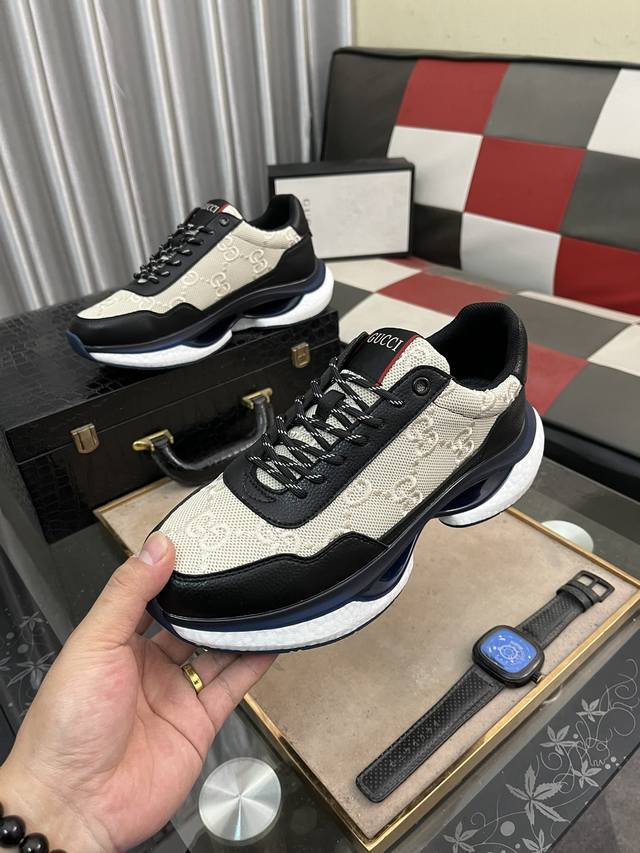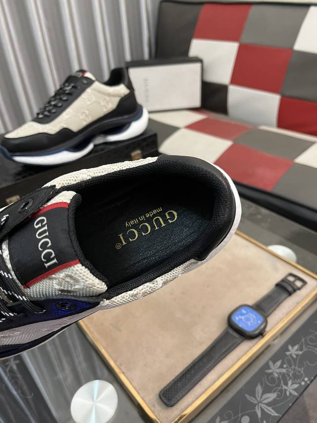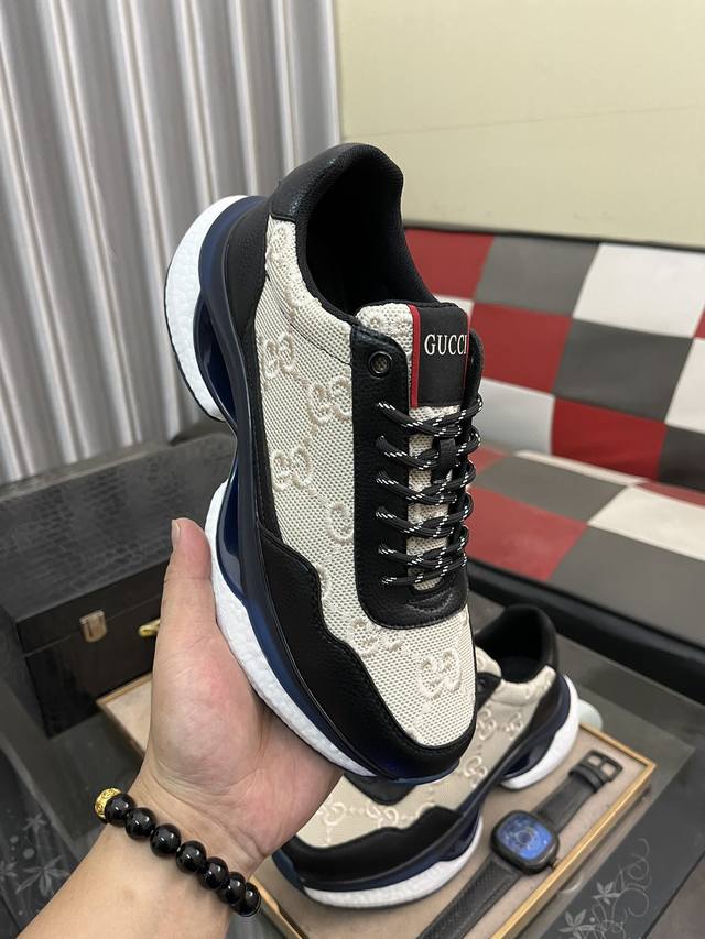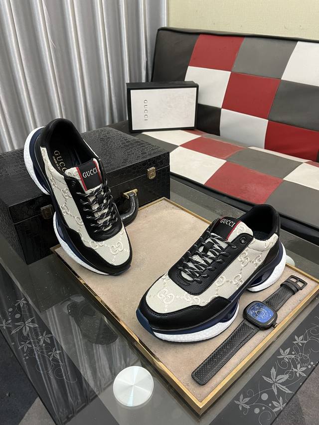 出厂价: 古奇 男士经典高帮休闲鞋,鞋面采用意大利进口牛皮专用防水布料透气内里,做工精细,高端大气 有时尚典范造型 原版橡胶耐磨大底 码数:38-444色可选