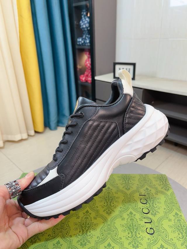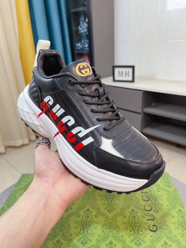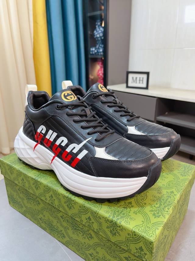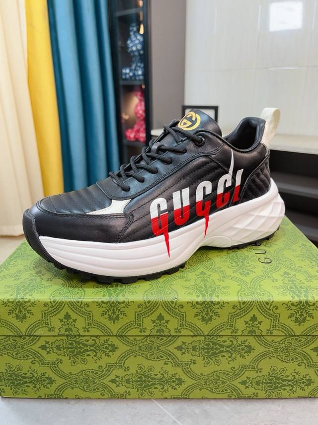 出厂价 古奇gucci 老爹鞋大底爆款休闲运动鞋,透气舒适,行走方便,潮男百搭之款,鞋面牛皮包边大底3D鞋面印花真皮内里古奇流行原版大底 运动跑步风,超级舒服