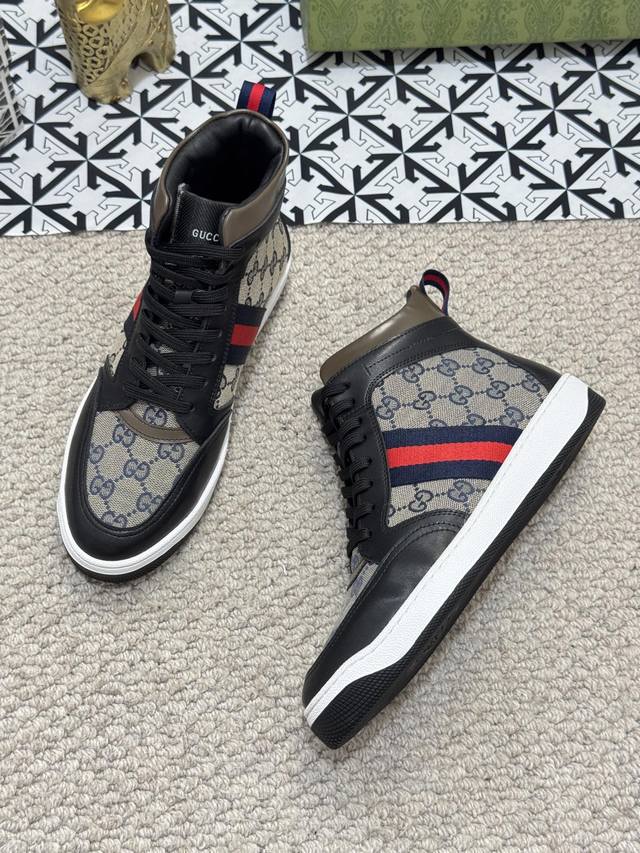 实价 上图请注意查看 古奇原单高帮跑量价 新款 选用进口原版牛皮 羊皮内里.原版耐磨橡胶大底!高品质精品!码数38-44