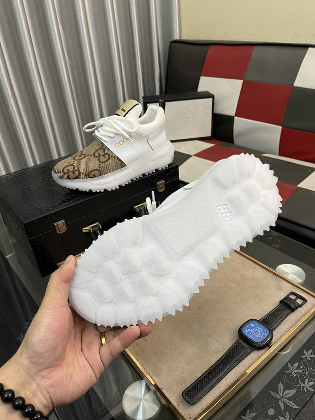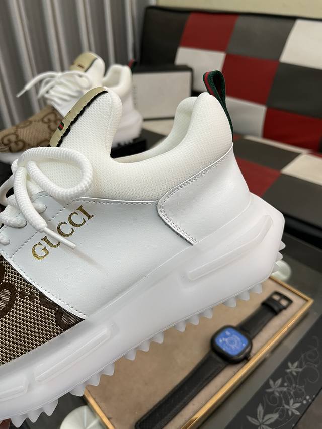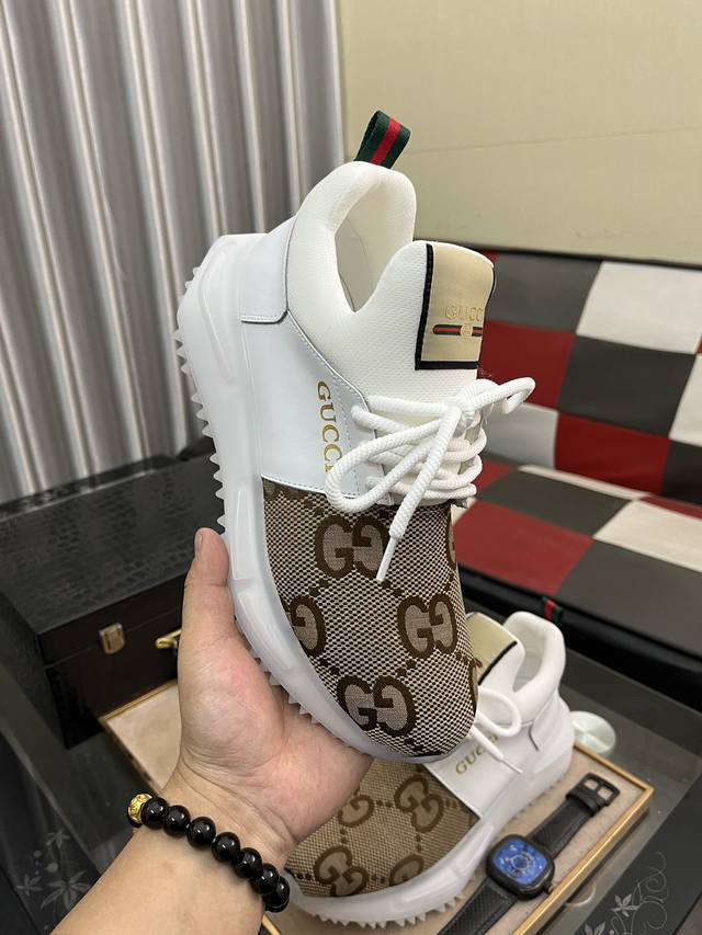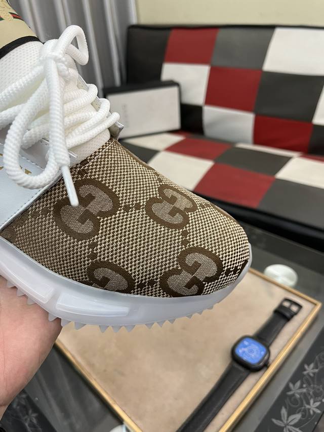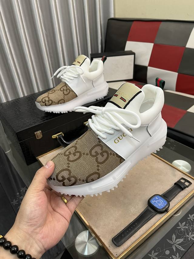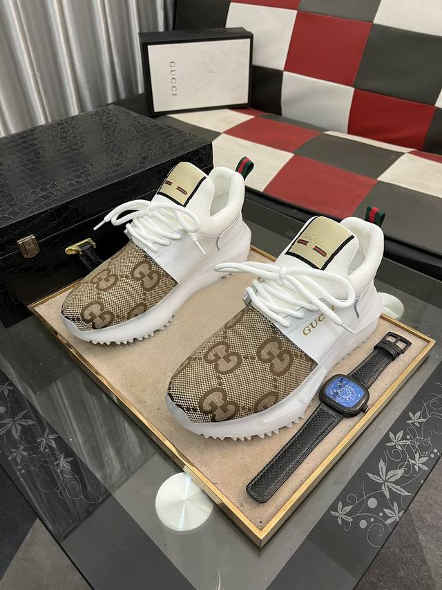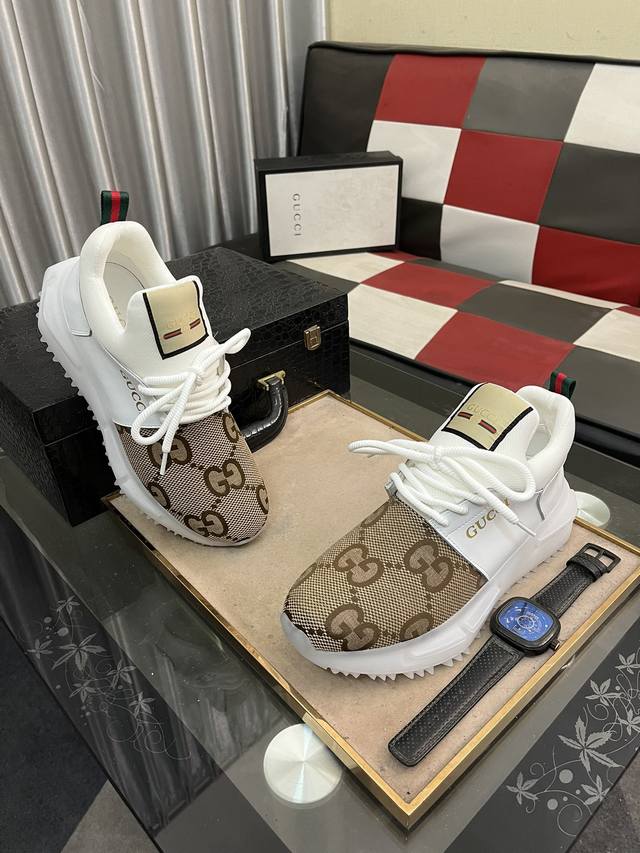 工厂p价 古奇.新品来袭时尚潮男必备,大牌风范, 材料:鞋面进口牛皮拼接面料+舒适网内里,耐磨橡胶大底,39-44