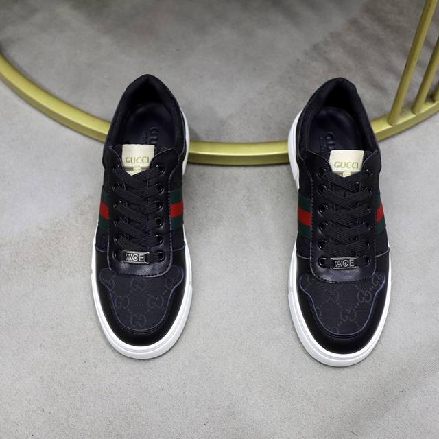/ 出厂价Pp: 品牌:古奇Gucci 标准码:38-44 等级:官网同款 材料:原版材料拼接 舒适透气羊皮内里 轻便耐磨运动大底 款式类别:男士时尚休闲鞋 跑步