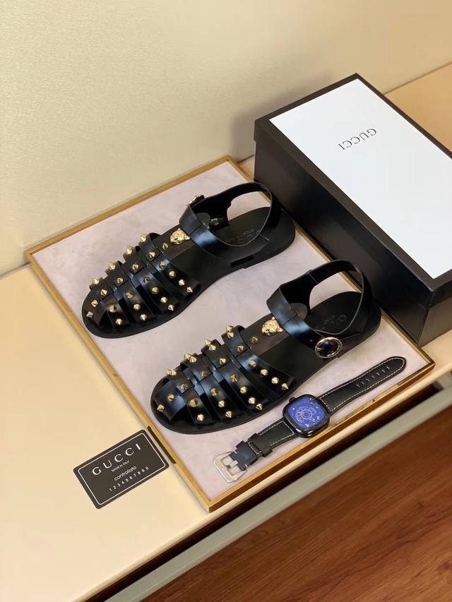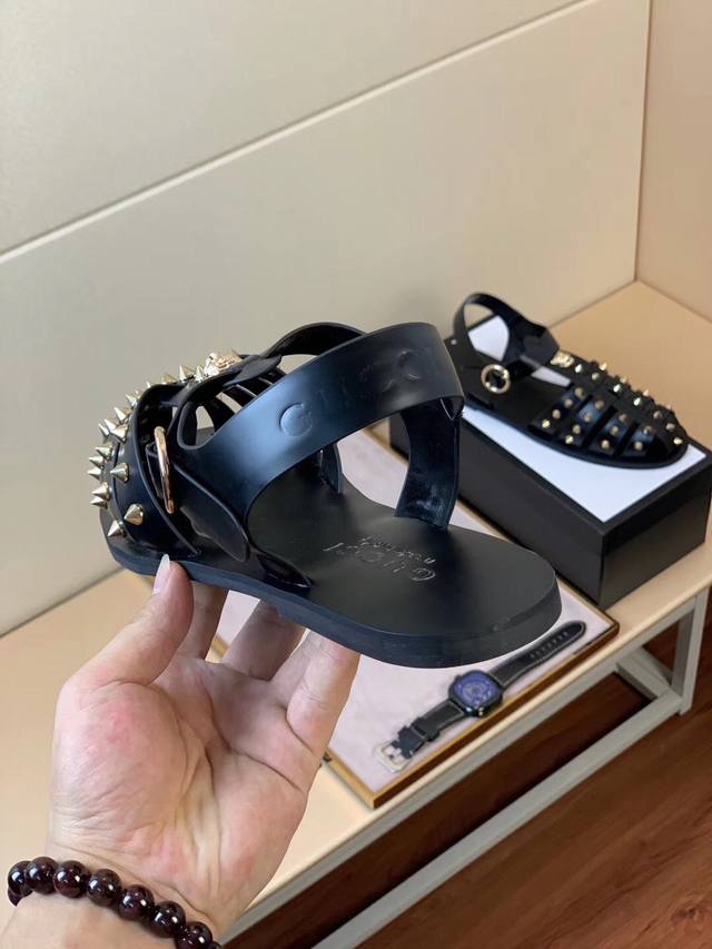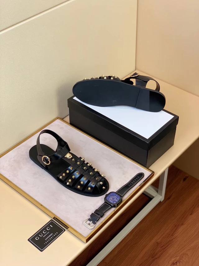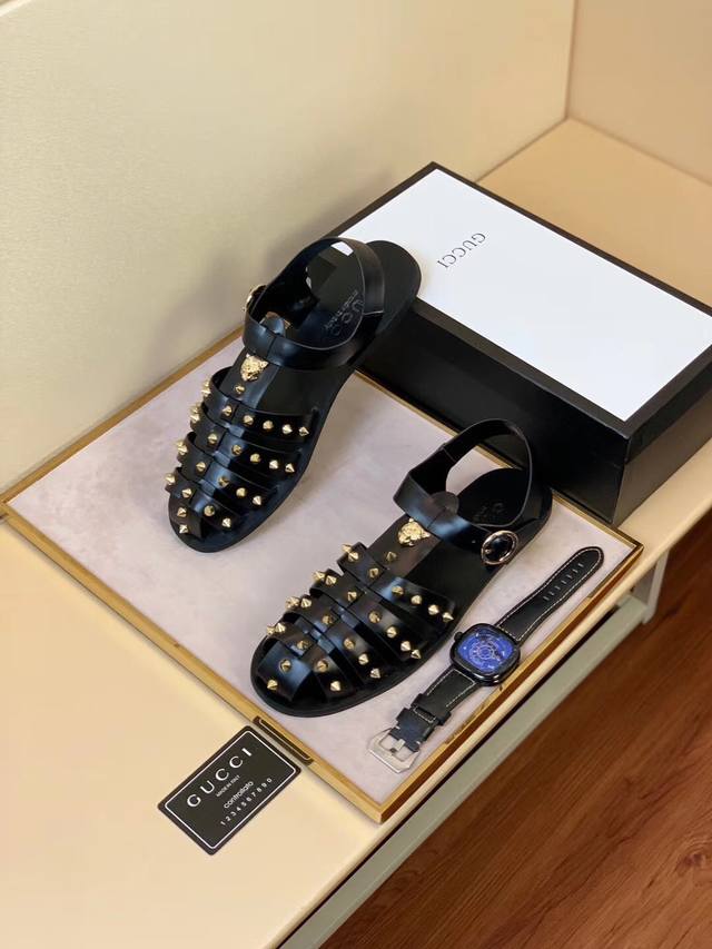 古奇春夏 男士凉鞋 作为时尚界的活跃一族 以大胆创新为本色 为中国时尚潮男打造出这款休闲商务风格面料采用原版材料 原版配色时尚大方如此奢华高档霸气 码数: 38-46