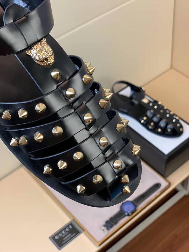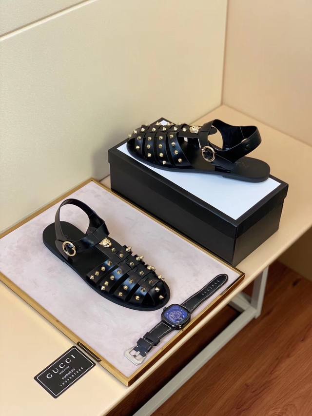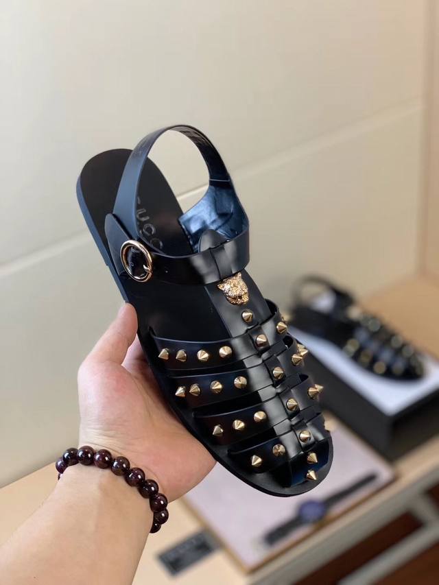/ 古奇春夏 男士凉鞋 作为时尚界的活跃一族 以大胆创新为本色 为中国时尚潮男打造出这款休闲商务风格面料采用原版材料 原版配色时尚大方如此奢华高档霸气 码数: 38