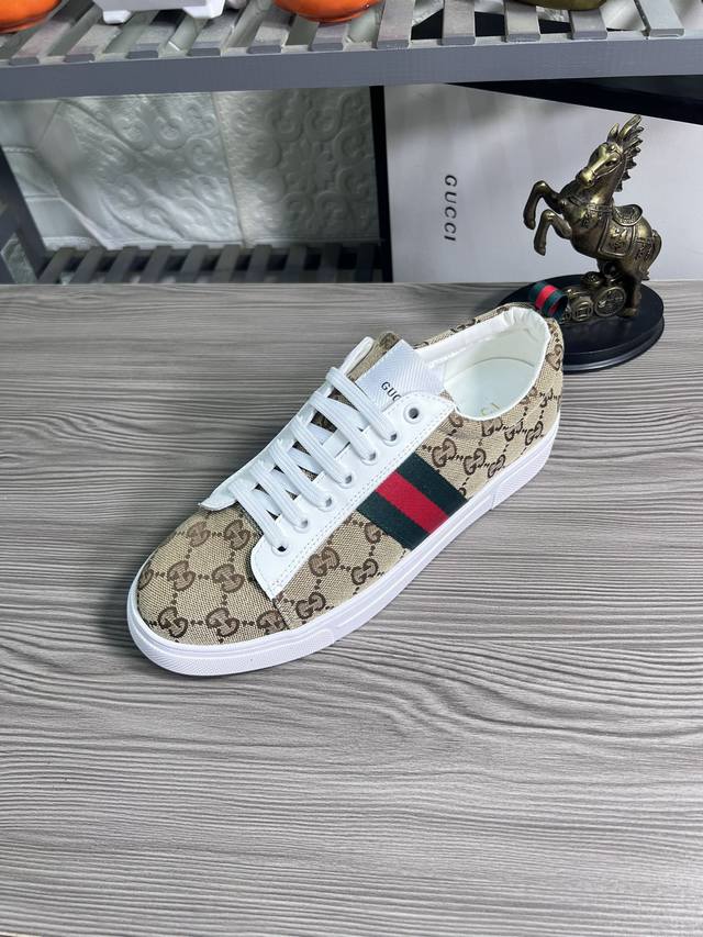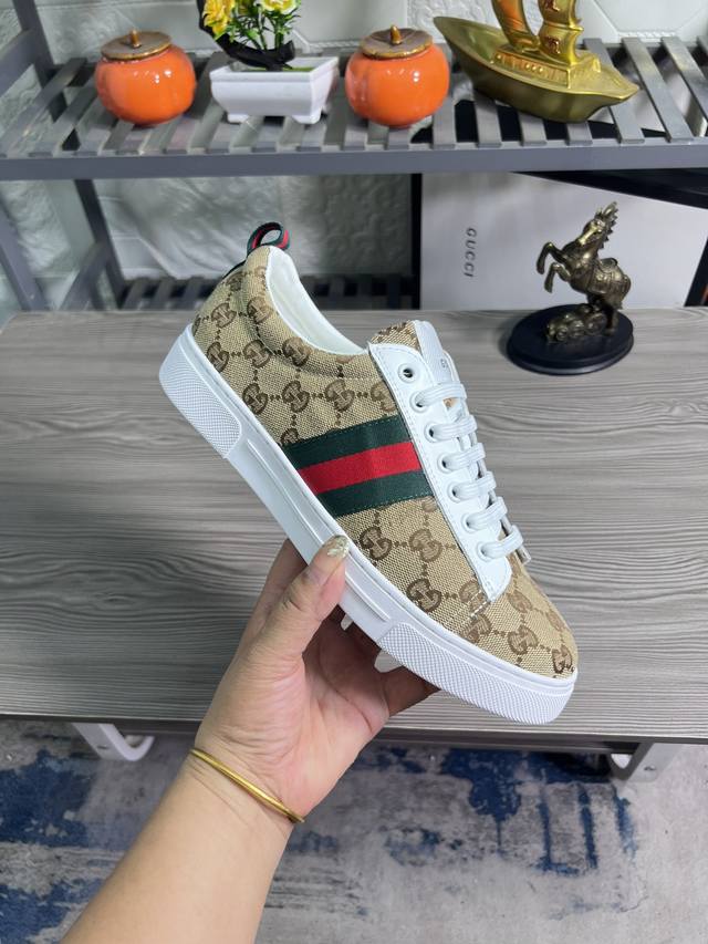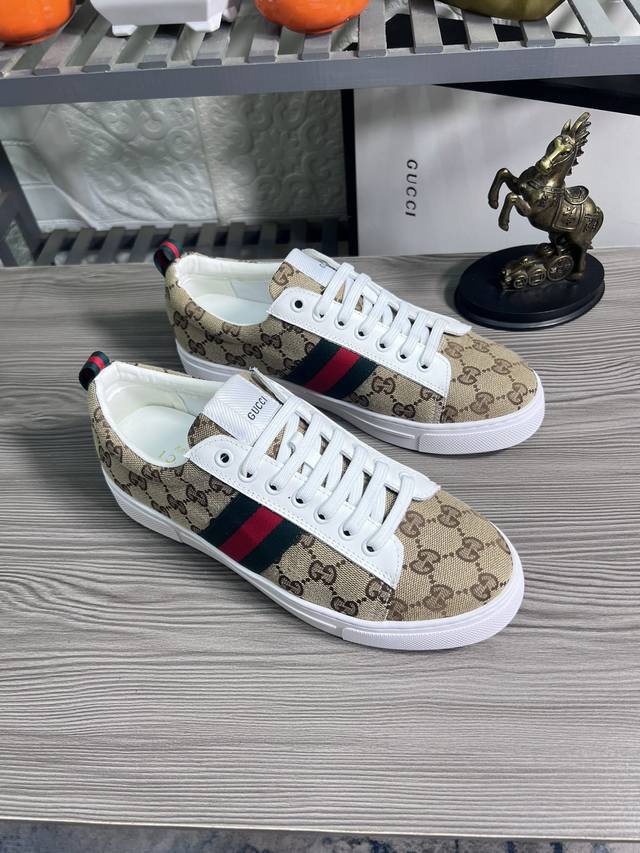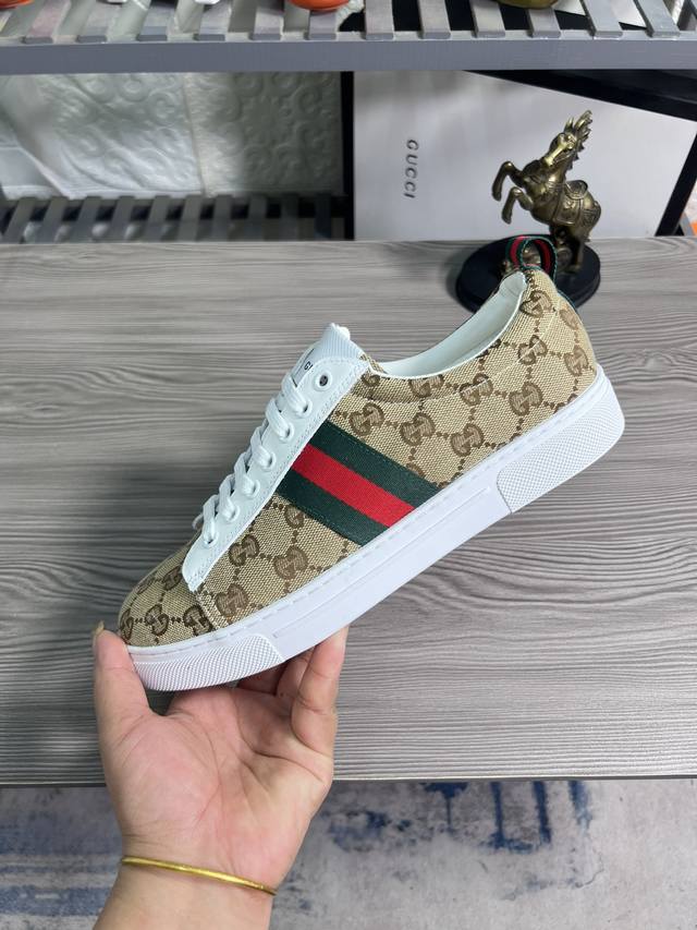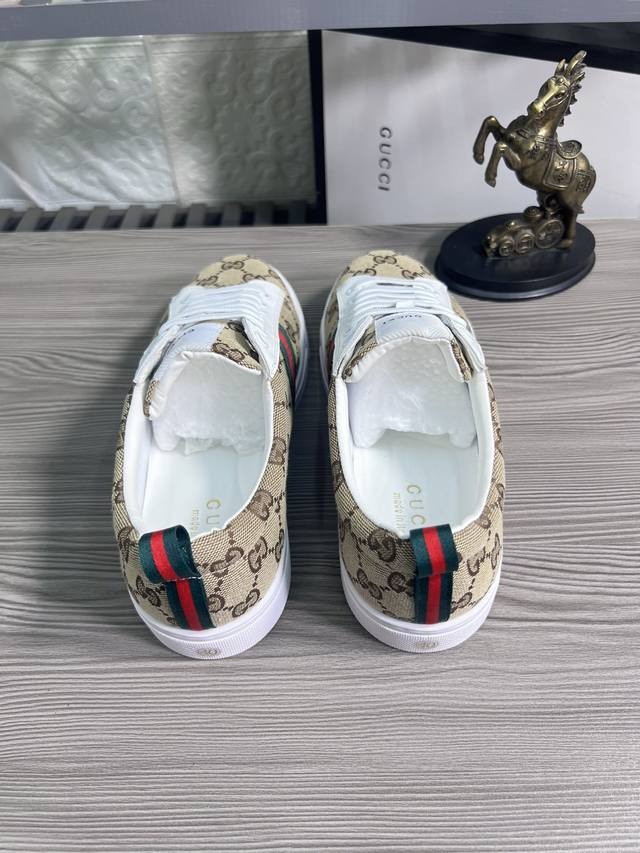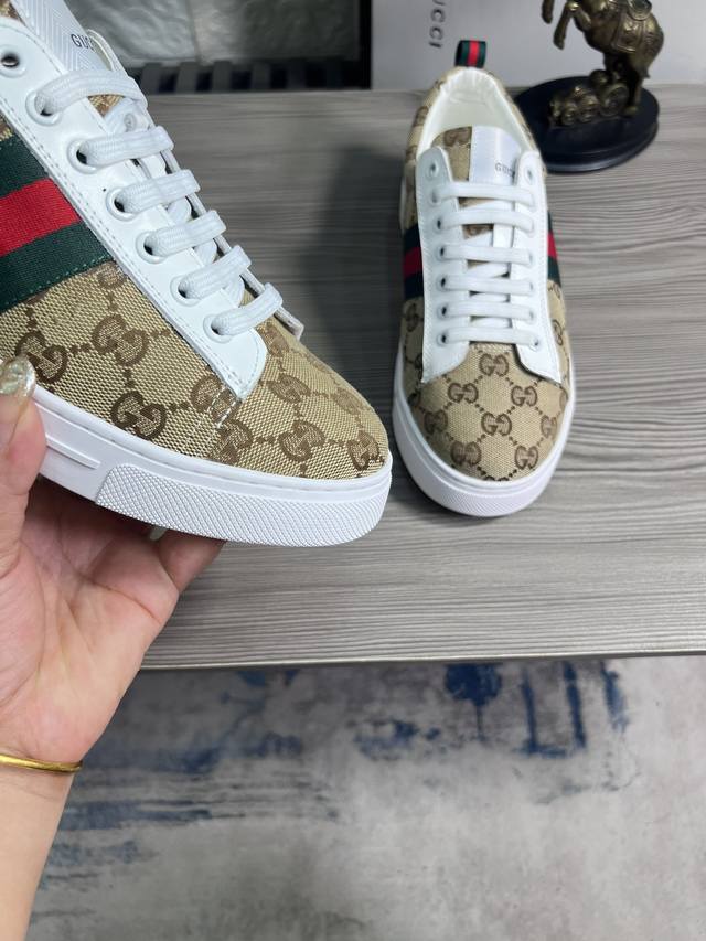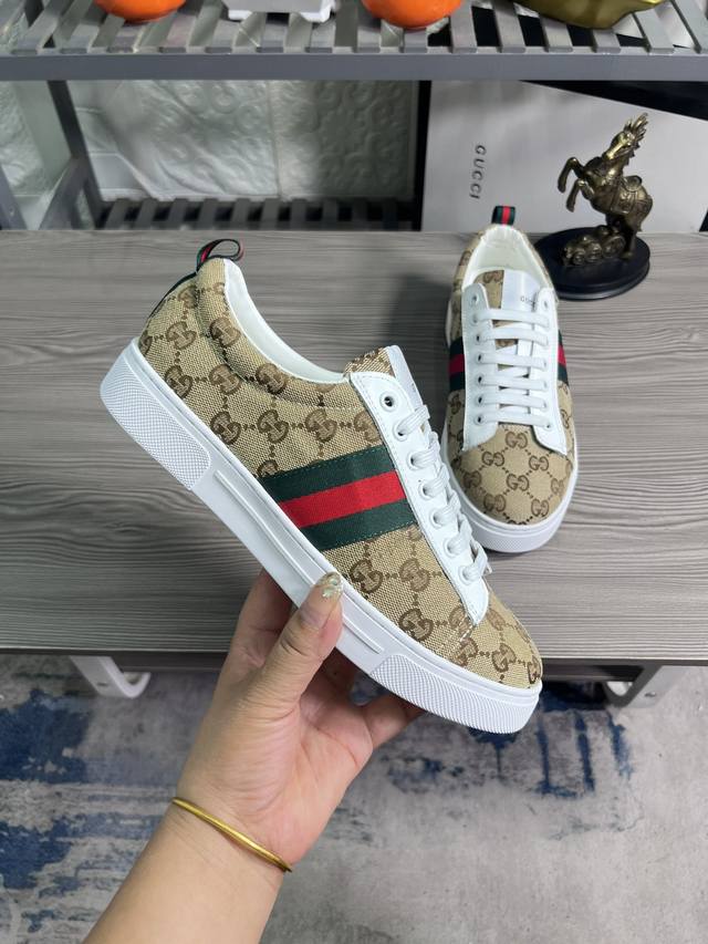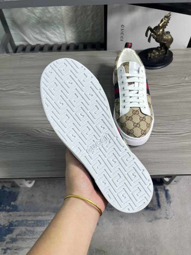古奇 休闲板鞋 官网同步新款 进口打蜡牛皮真皮内里制作原版中底 私家定制滴胶发泡大底大底组合 38-44w