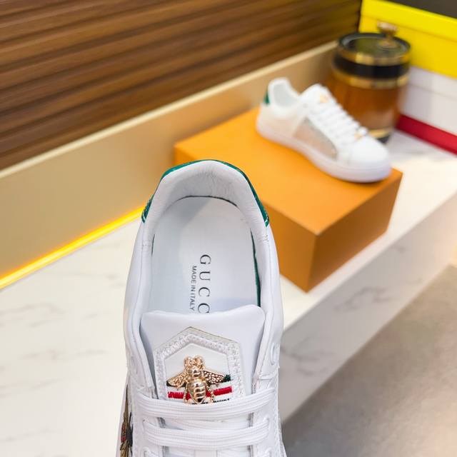 古奇 Guci 官网最新款-休闲系列男鞋,以经典的设计成为永不落幕的时尚宠儿,百搭 潮男必备 板鞋易上脚方便舒适 休闲舒适。夏季必备品 采用进口特殊材料+大面积品牌设计风格独特更呈现出大气上档次+专用大底,耐磨,轻便,整体设计和谐统一又不缺乏个性 你值得拥有! 单色尺码38~44。A12