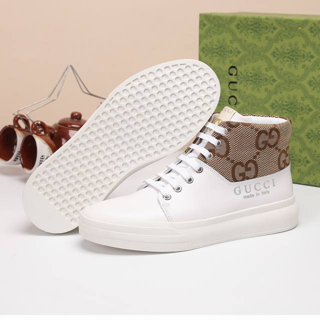 古驰 GUCCI新款上架 精湛工艺 顶级质量高端精品男士休闲鞋此款面料采用进口顶级小牛皮内里采用进口舒适羊皮原版防滑耐磨PU大底38--44