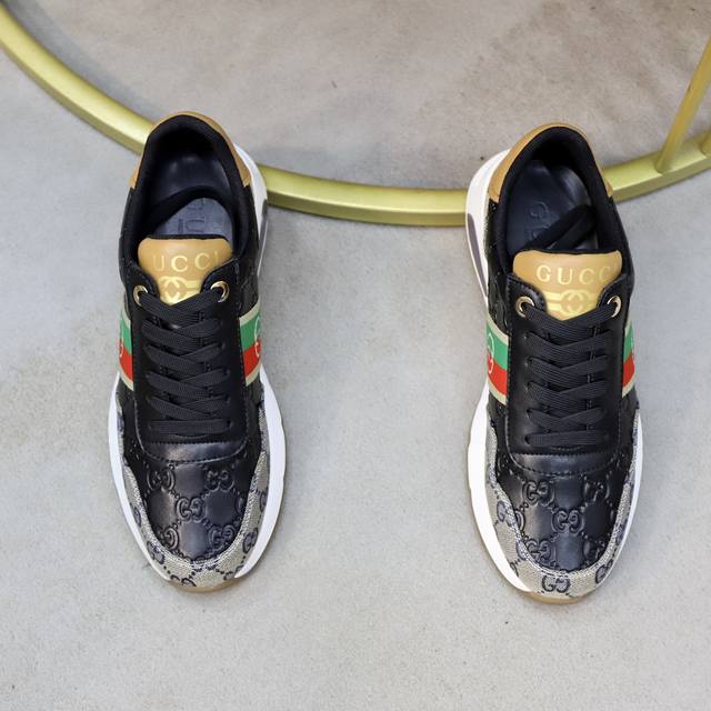 新款: 厂价: 古奇Gucci* 最新爆款休闲鞋,顶端品牌奢侈~代购,顶级~质量。鞋面選用进口透气牛皮搭配材质透气羊皮垫脚...