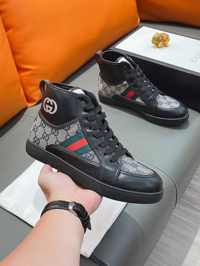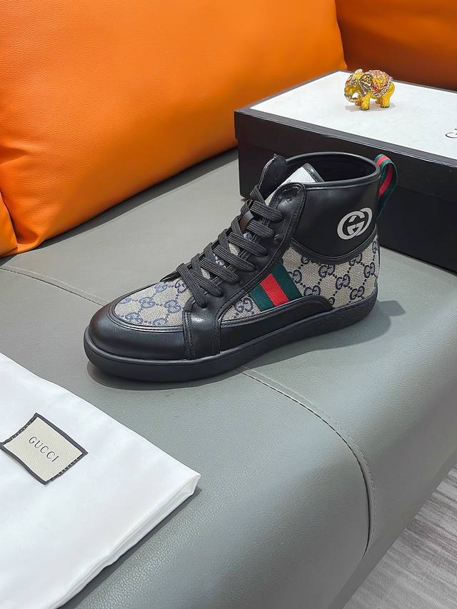 商品名称:GUCCI 古驰 正规码数: 38-44 高帮鞋 商品材料:精选 牛皮鞋面,柔软羊皮内里;原厂大底。