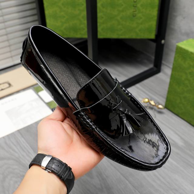 商品商标:Gucci 古驰 休闲套脚鞋 正码码数: 38-44 商品材料:精选漆面牛皮鞋面 猪皮内里 橡胶大底